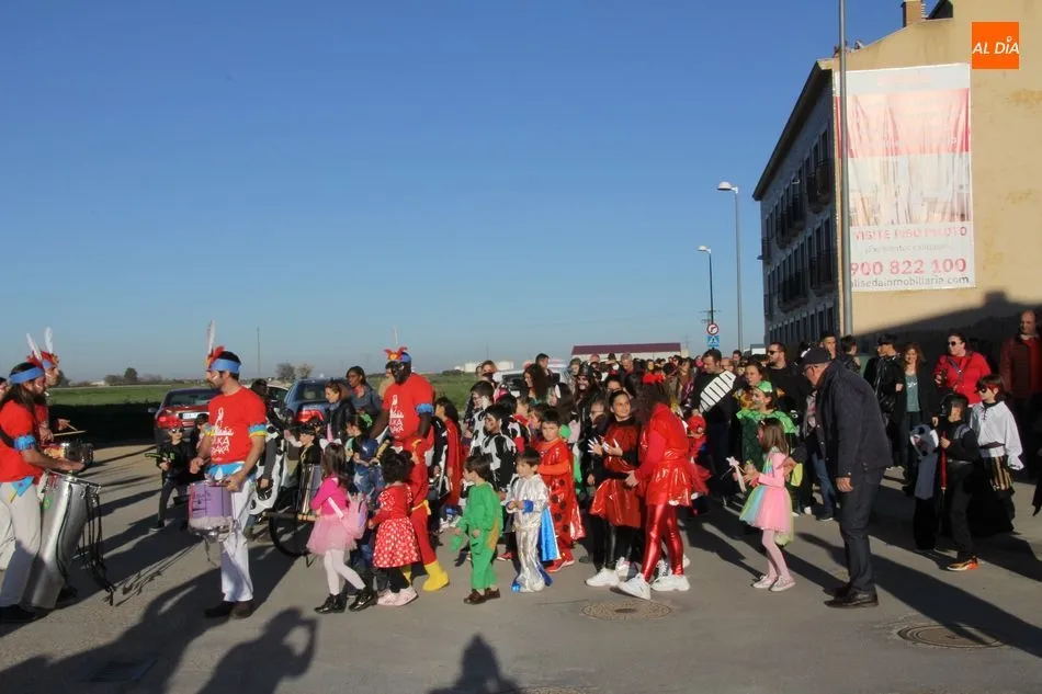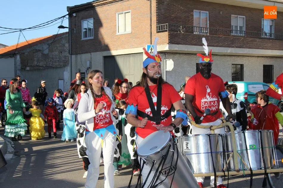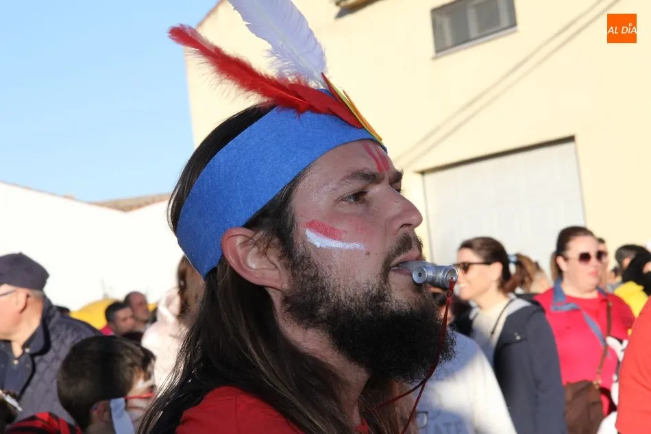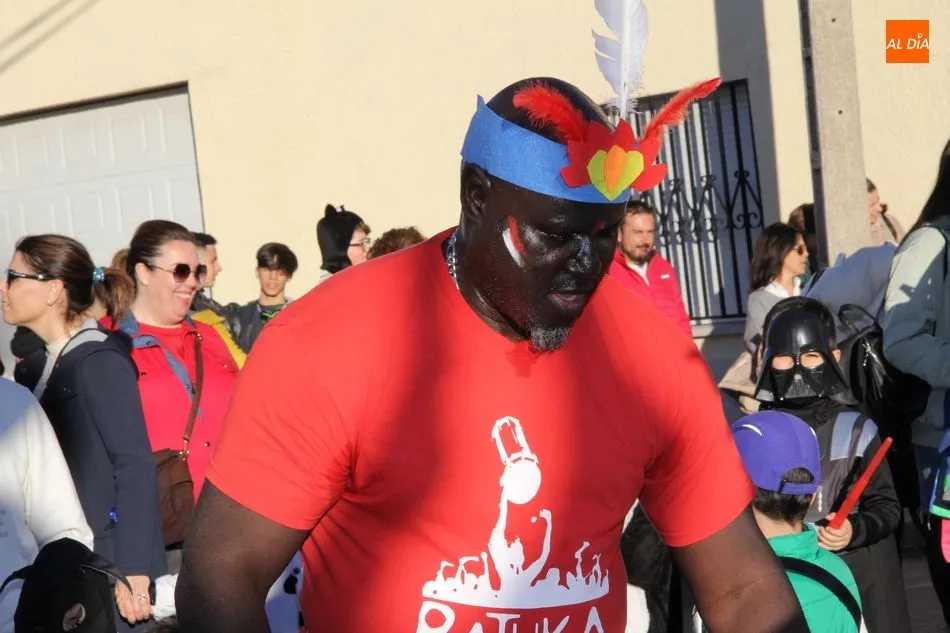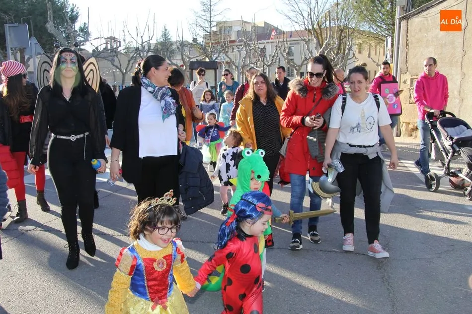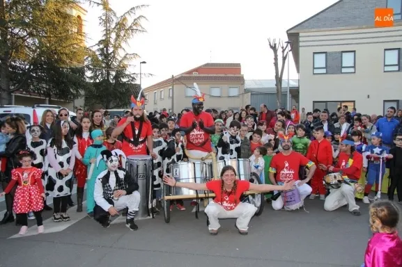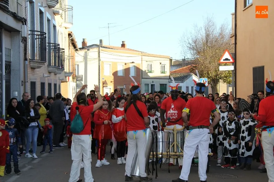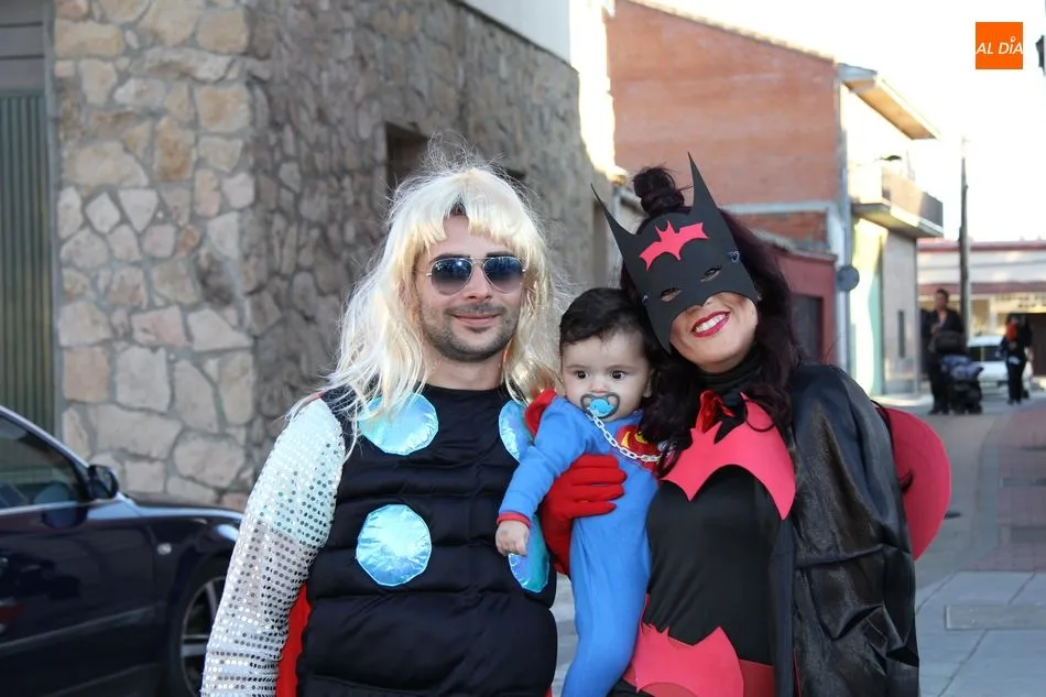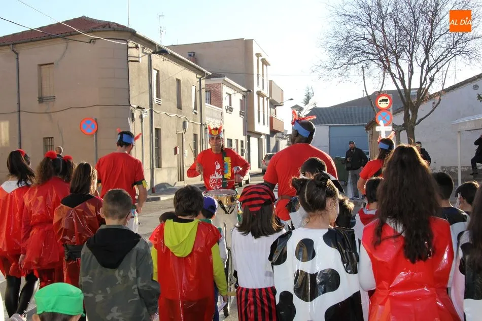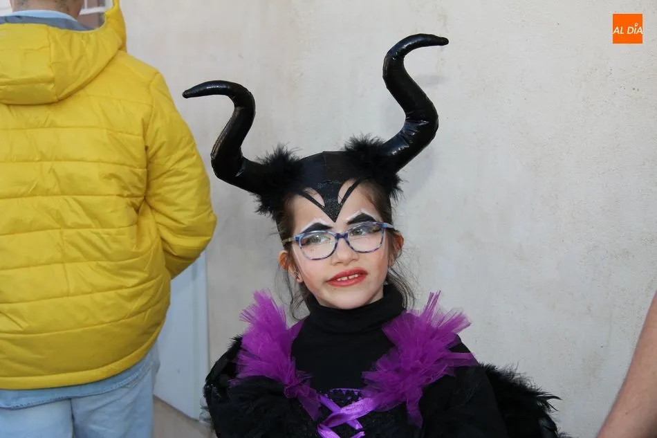 Ambiente festivo en Castellanos de Moriscos para celebrar el Carnaval. Los originales disfraces han sido los protagonistas del animado y participativo con pasacalles y mini disco, organizado este domingo por Ciudad de las Niñas y Niños de Castellanos de Moriscos y los jóvenes del Centro de Castellanos.