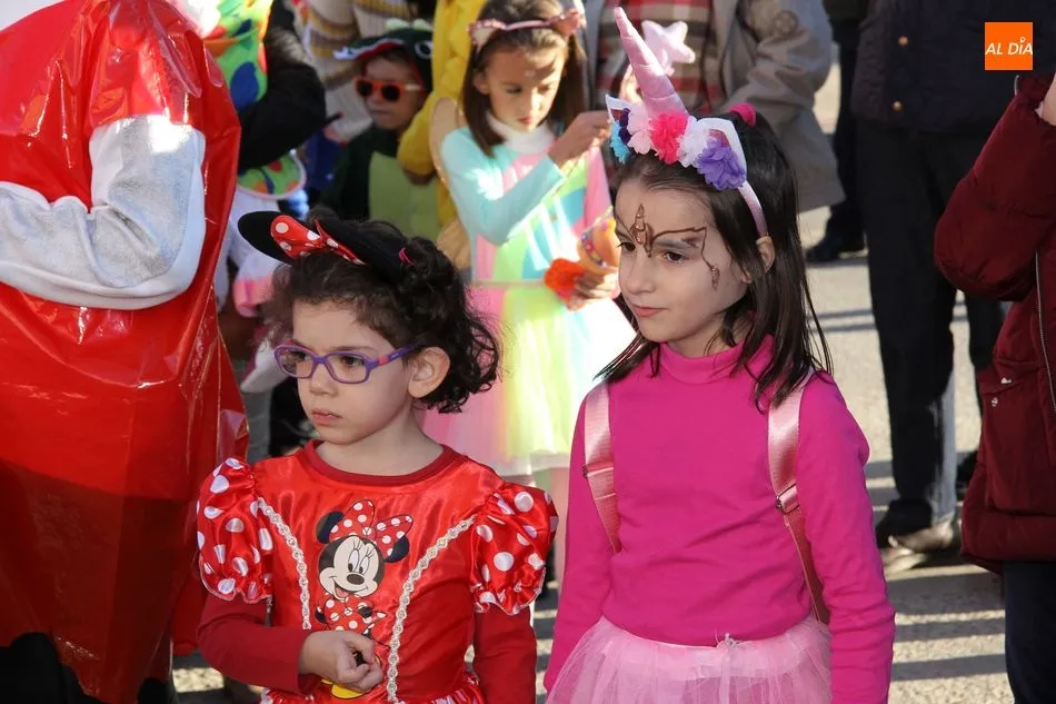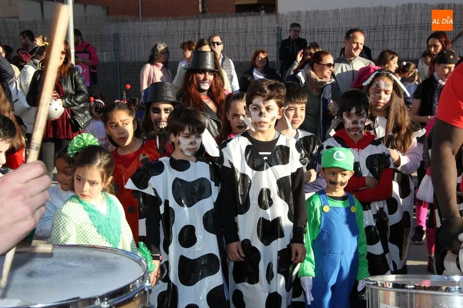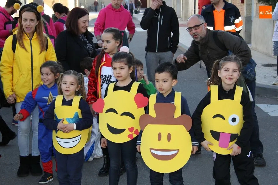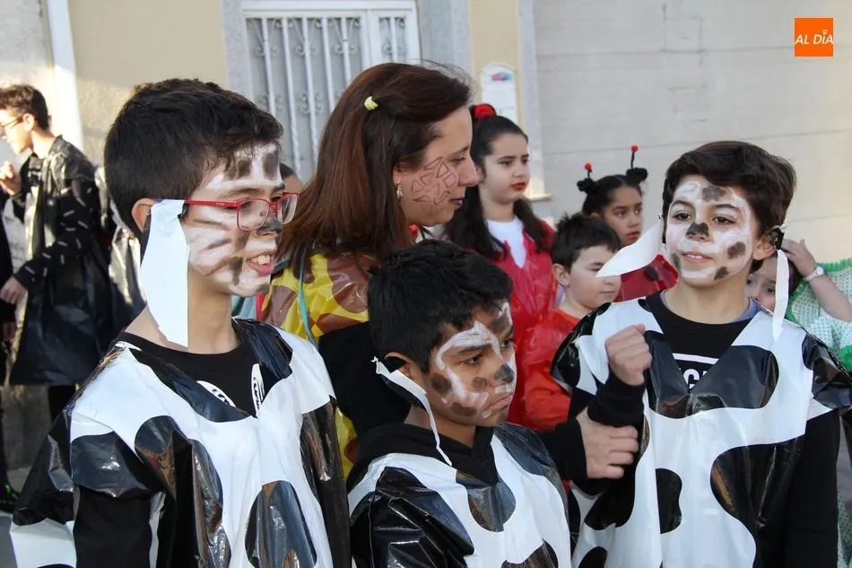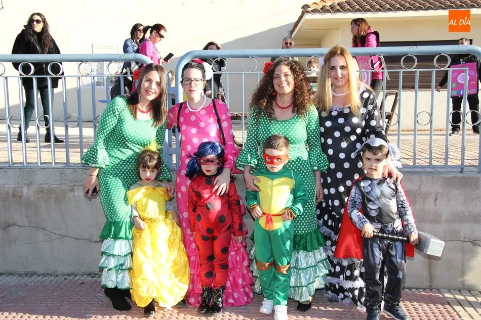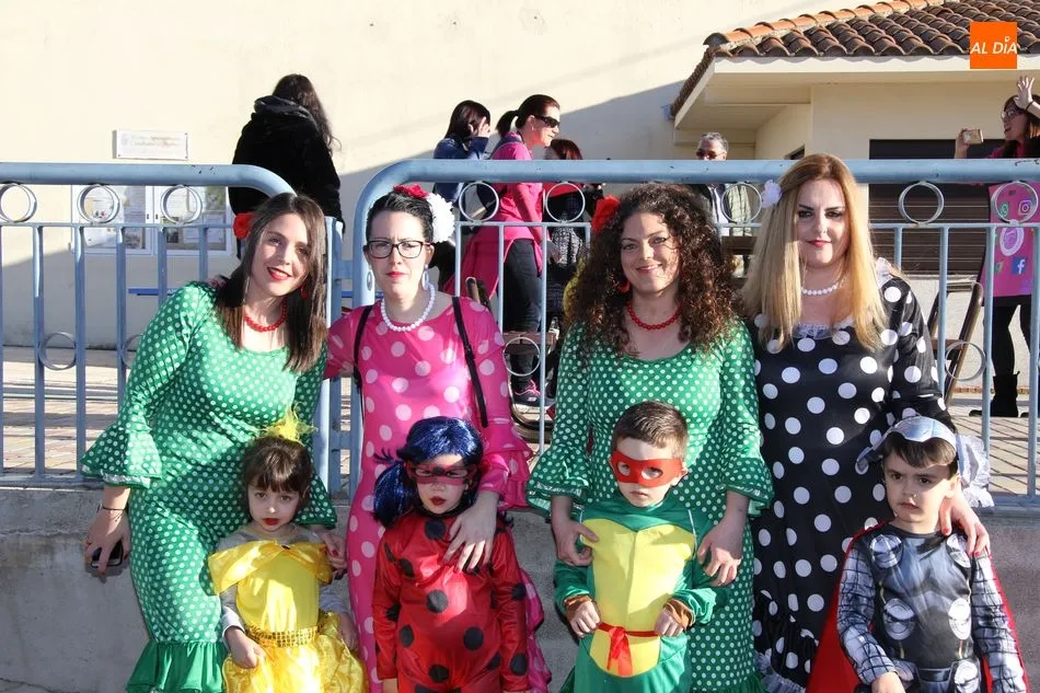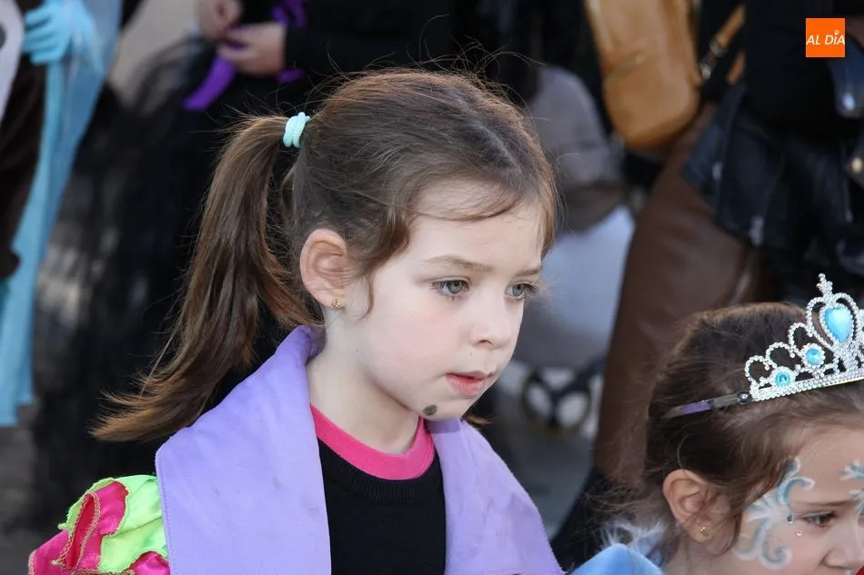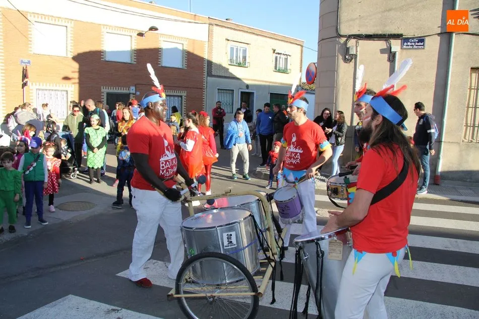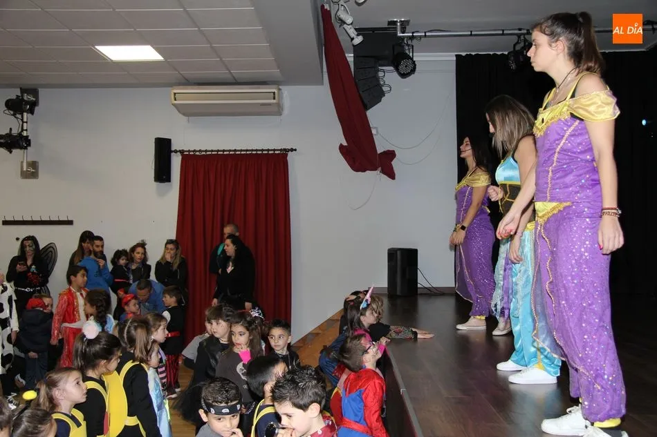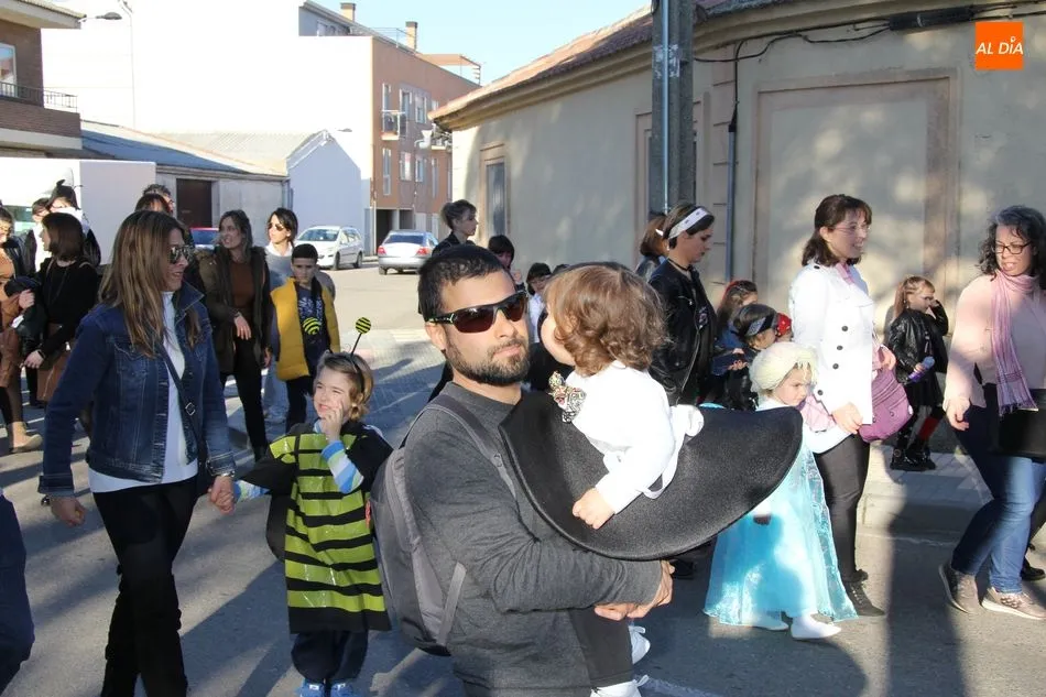 Ambiente festivo en Castellanos de Moriscos para celebrar el Carnaval. Los originales disfraces han sido los protagonistas del animado y participativo con pasacalles y mini disco, organizado este domingo por Ciudad de las Niñas y Niños de Castellanos de Moriscos y los jóvenes del Centro de Castellanos.