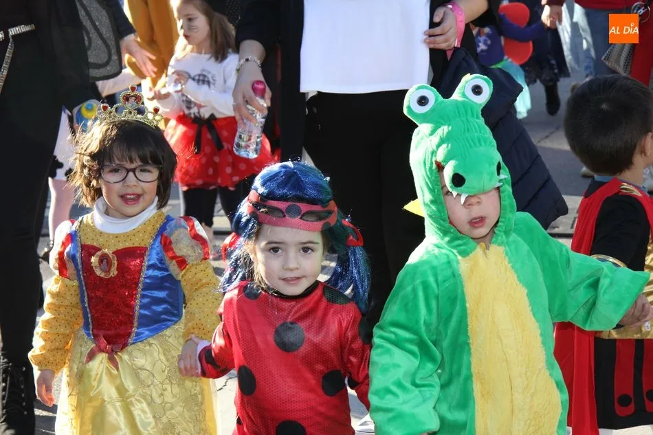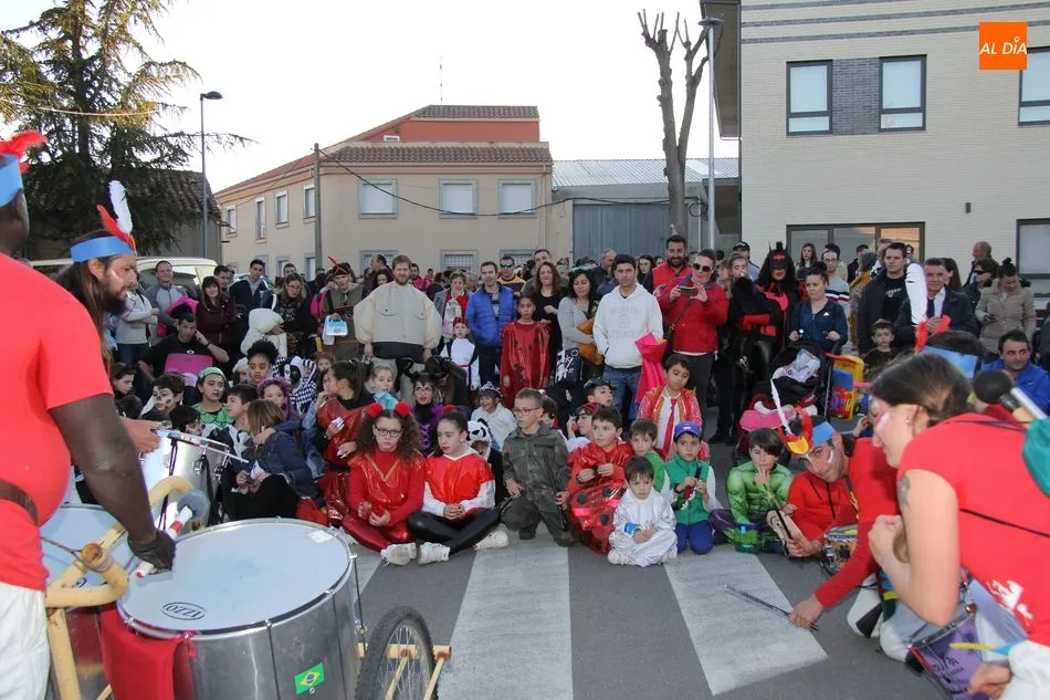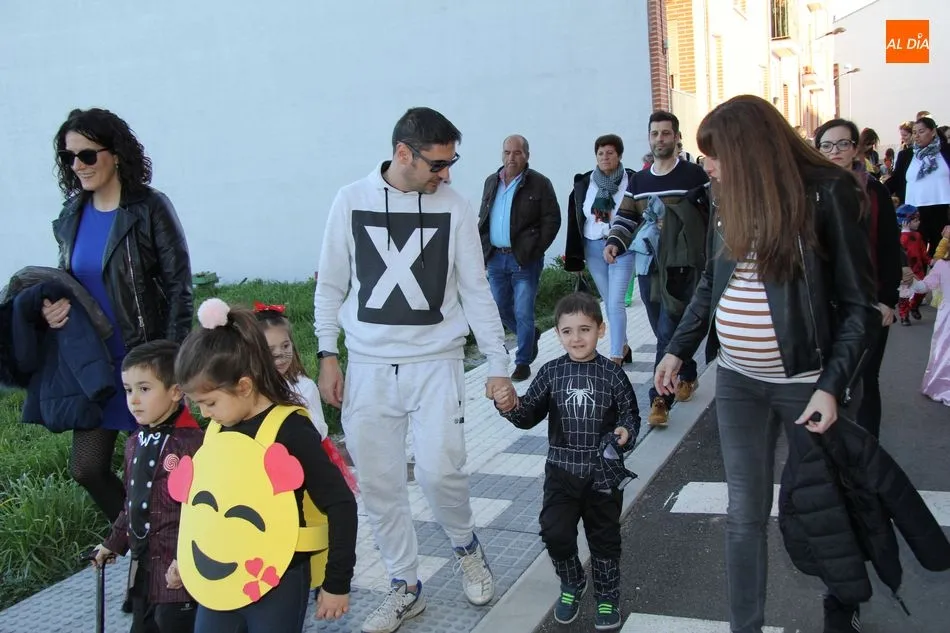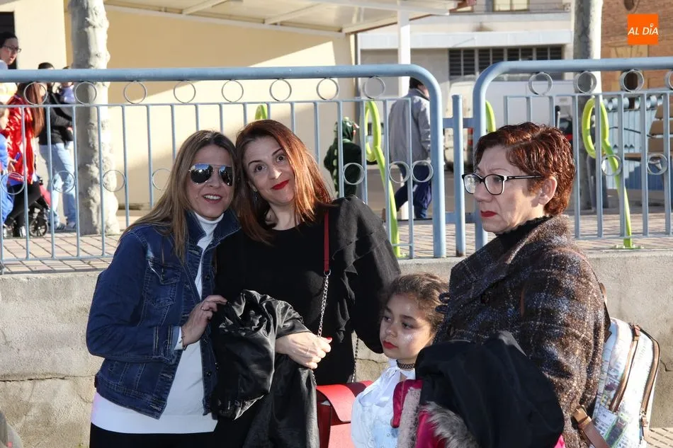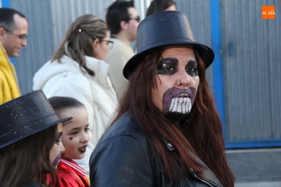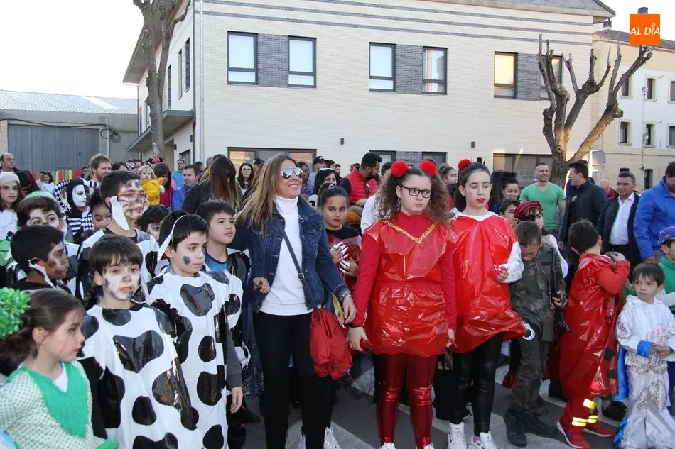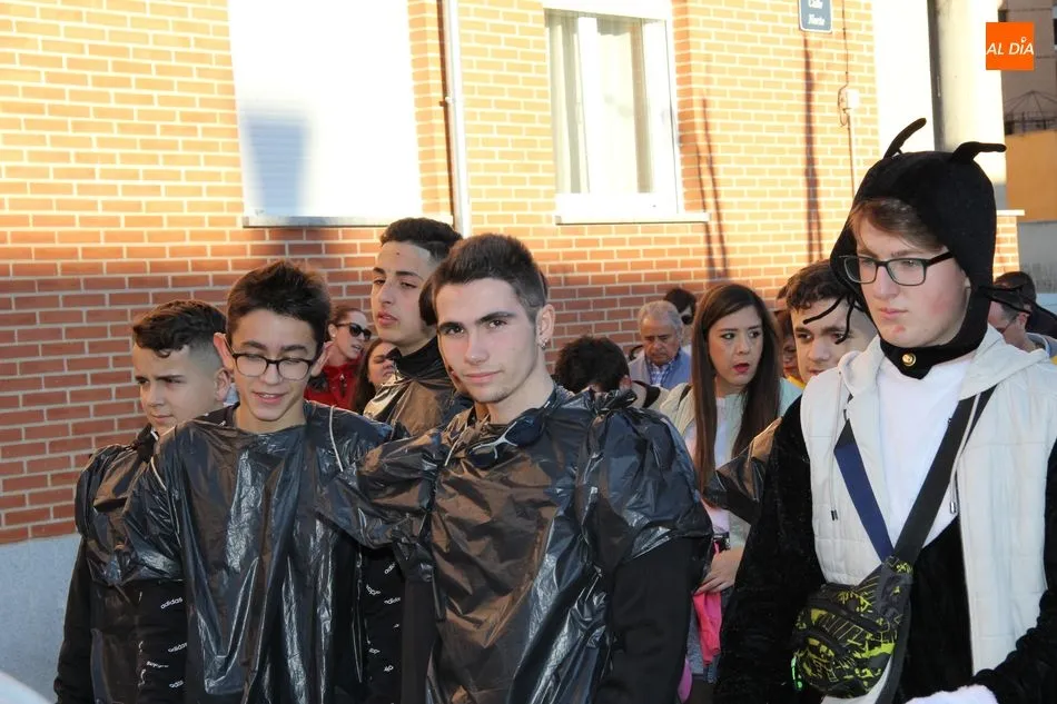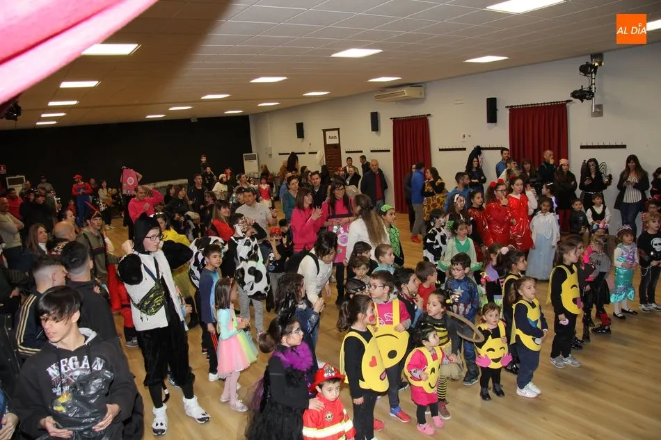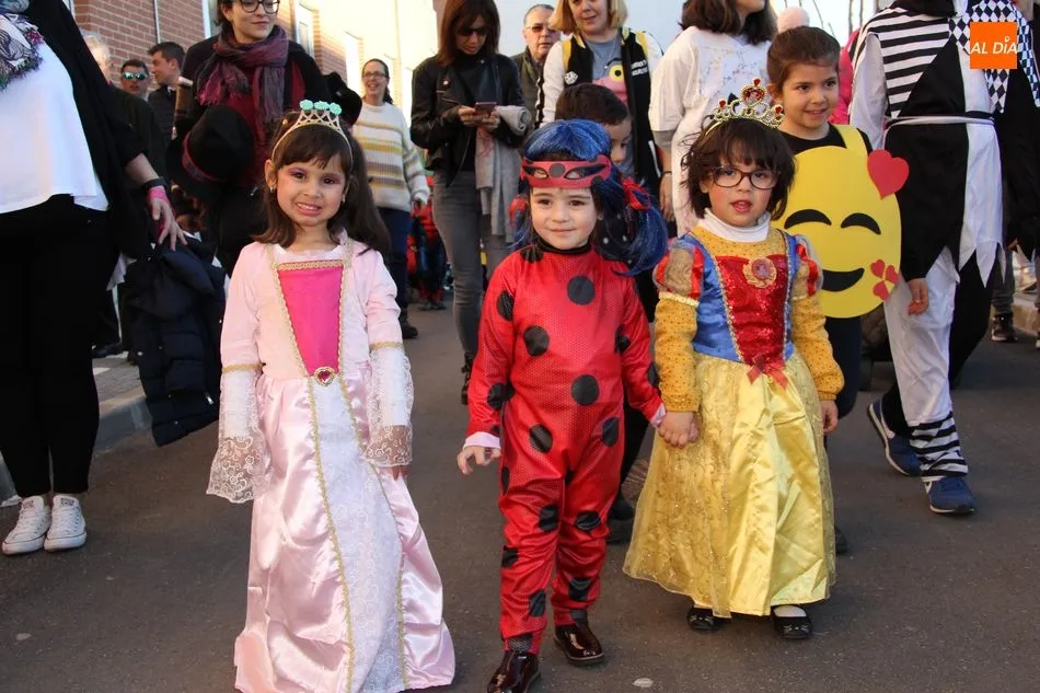 Ambiente festivo en Castellanos de Moriscos para celebrar el Carnaval. Los originales disfraces han sido los protagonistas del animado y participativo con pasacalles y mini disco, organizado este domingo por Ciudad de las Niñas y Niños de Castellanos de Moriscos y los jóvenes del Centro de Castellanos.
