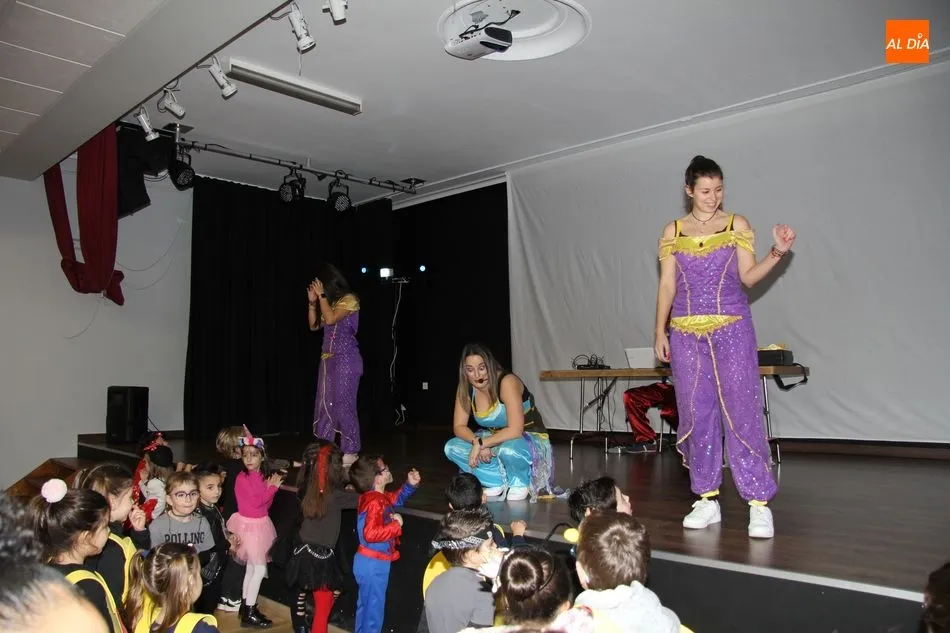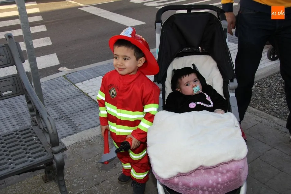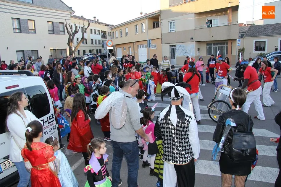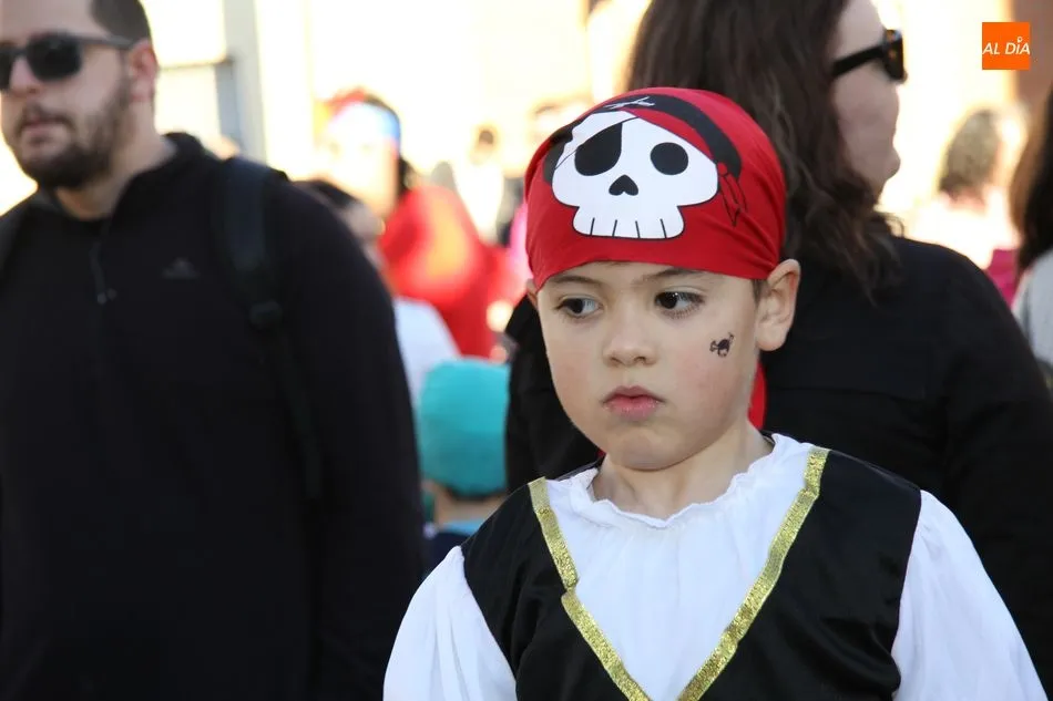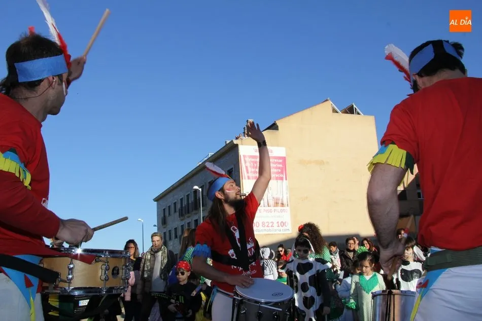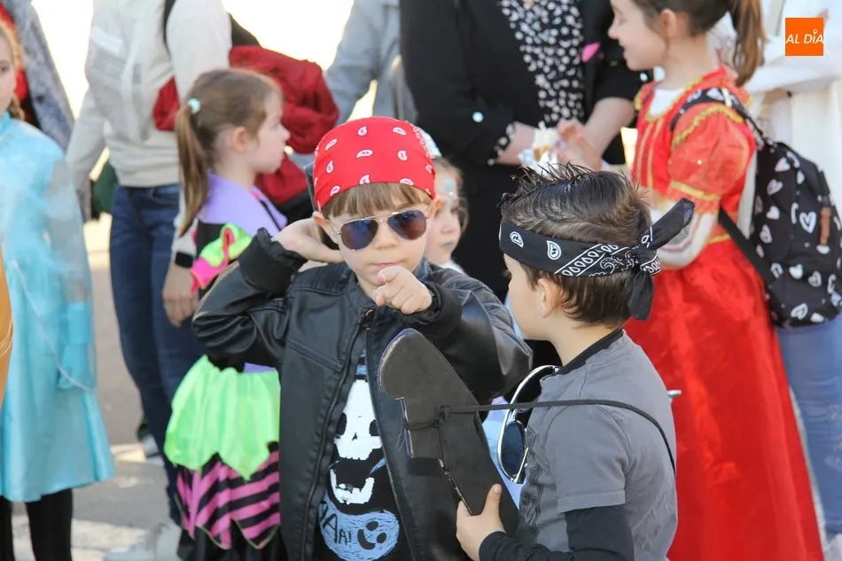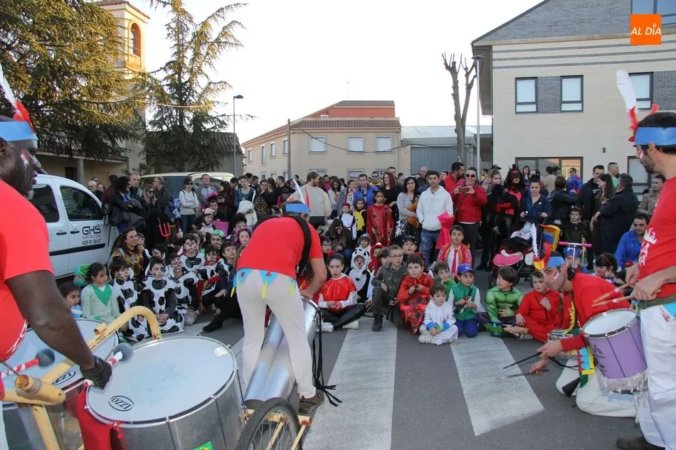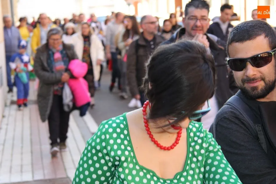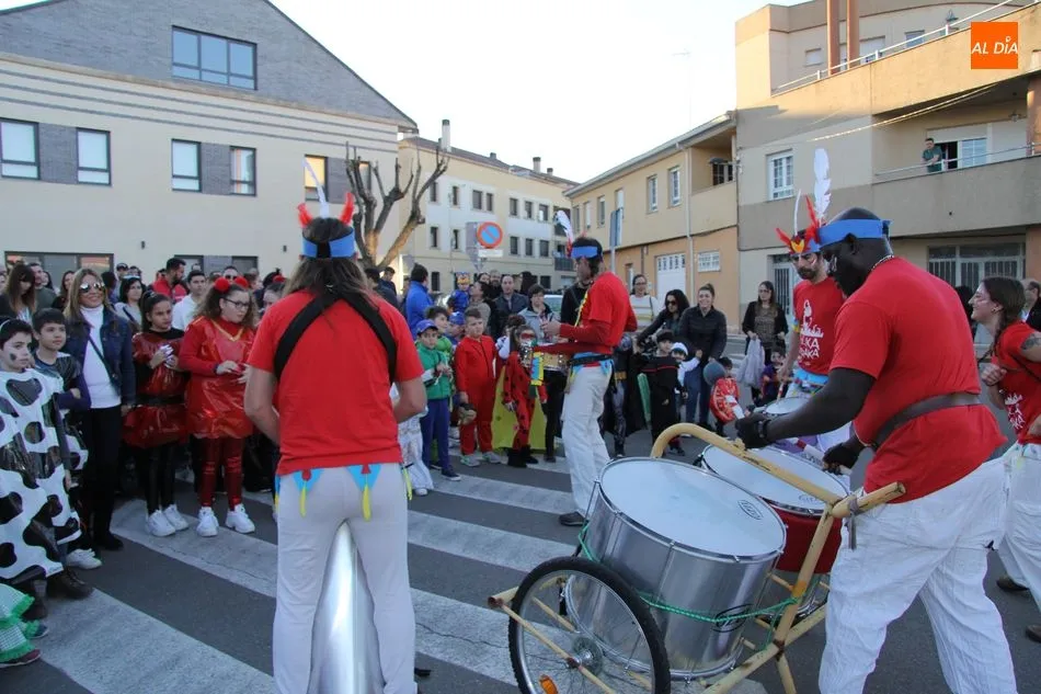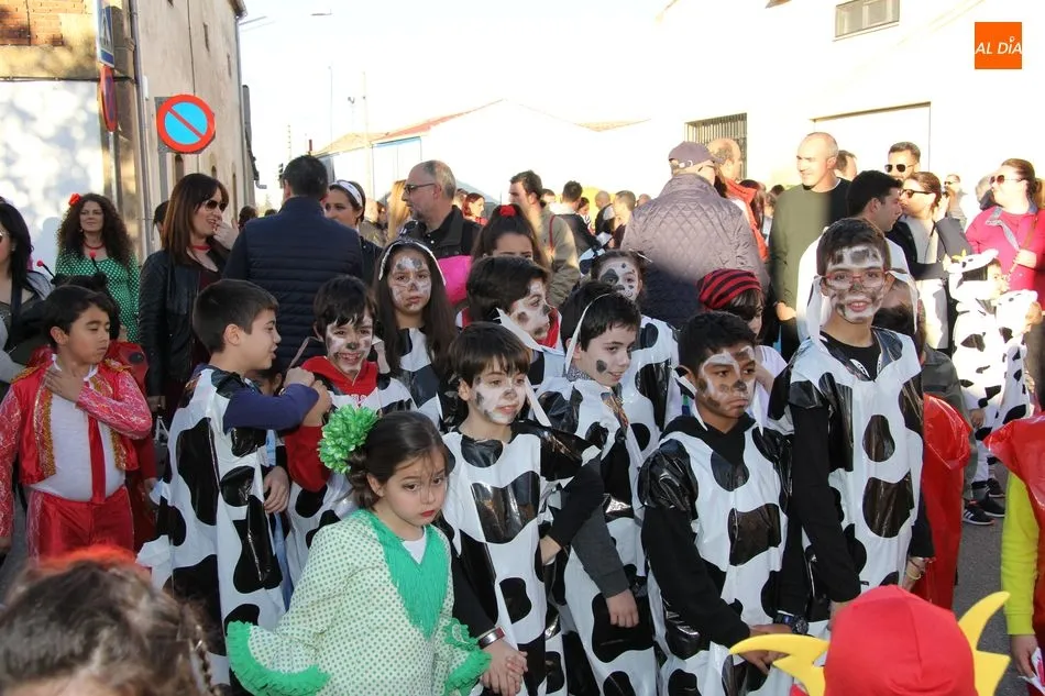 Ambiente festivo en Castellanos de Moriscos para celebrar el Carnaval. Los originales disfraces han sido los protagonistas del animado y participativo con pasacalles y mini disco, organizado este domingo por Ciudad de las Niñas y Niños de Castellanos de Moriscos y los jóvenes del Centro de Castellanos.