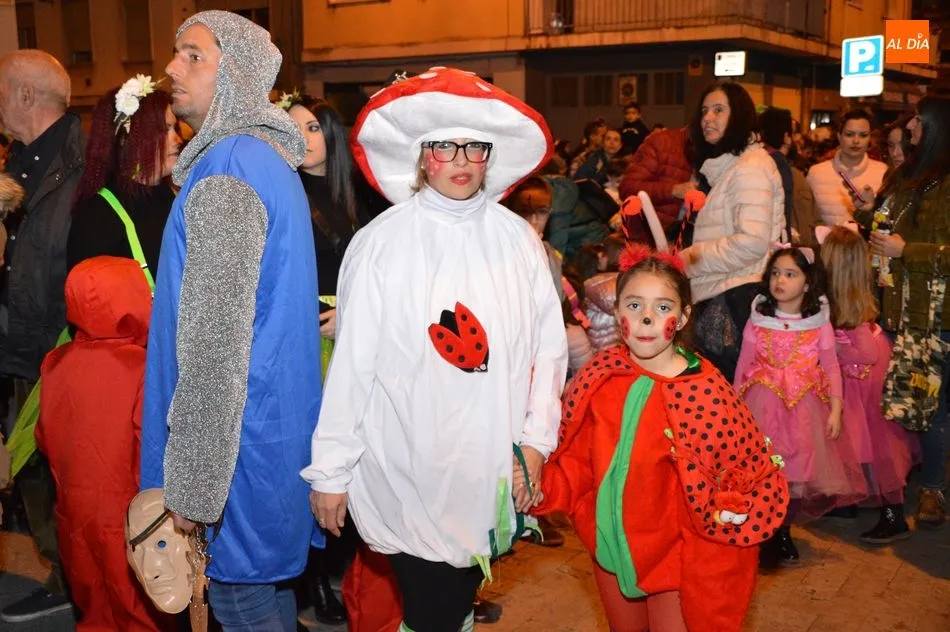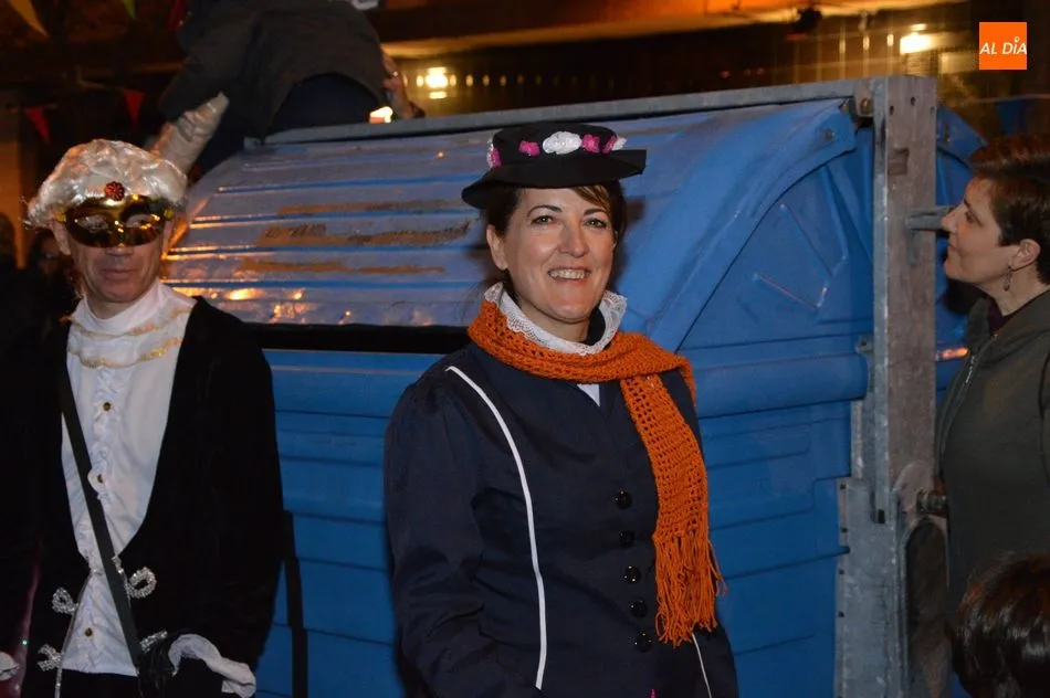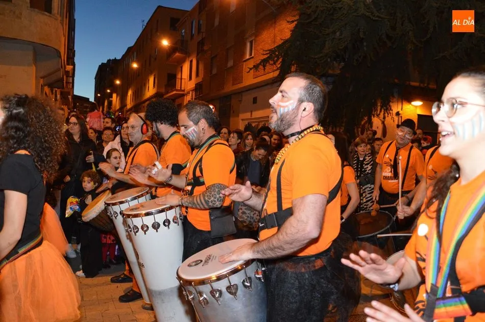Las charangas, el atronador sonido de la batucada y los zancudos han formado parte también del cortejo carnavalero que ha llenado el barrio de alegría.