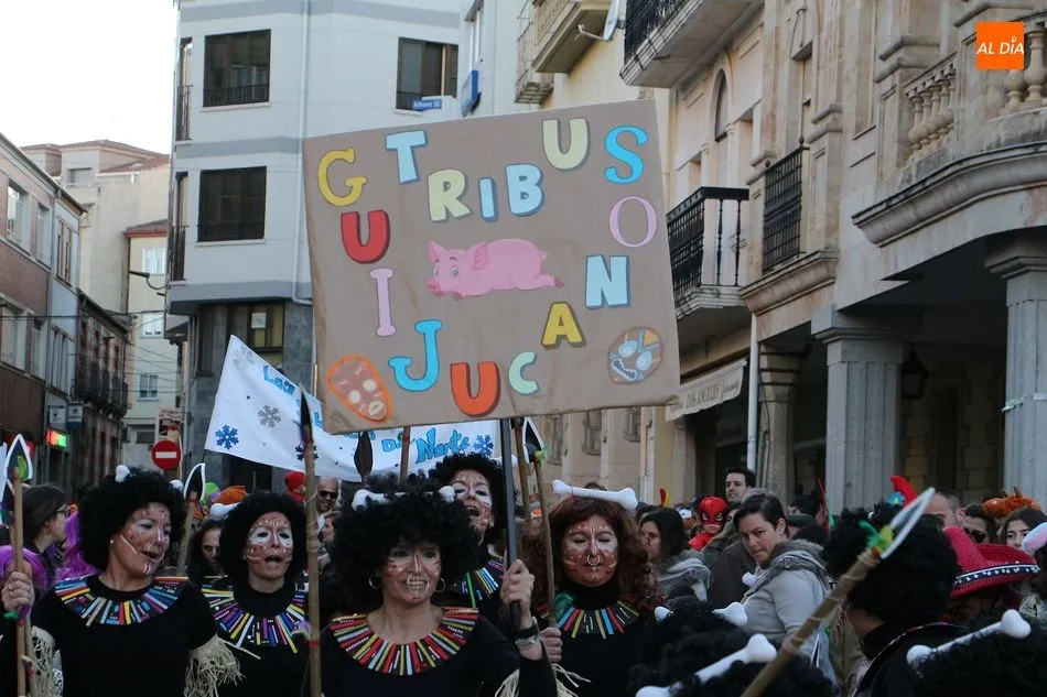 Cultutotal y Batukamatraka animaron el pasacalles ?Iberian Moon?, que puso en marcha a los guijuelenses. Esta actividad recorrió alguna de las principales calles de la localidad para finalizar en la plaza Mayor donde los responsables eligieron a las tres mejores tribus que recibieron un premio por parte del Ayuntamiento: Las Lobas Blancas, Araka la Kana y Los Guijucanos fueron los afortunados. A la entrada de la carpa municipal, se entregó a todos los niños una bolsa de golosinas de carnaval, de las que se prepararon 700 unidades. Todos los presentes disfrutaron del baile de disfraces ?Movida espacial? a modo de despedida.