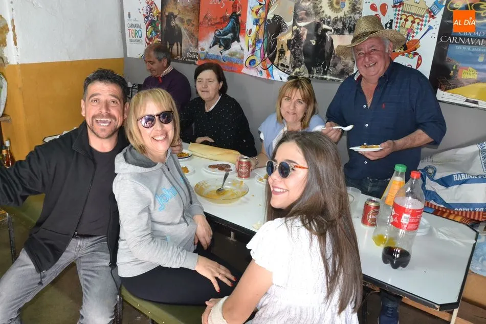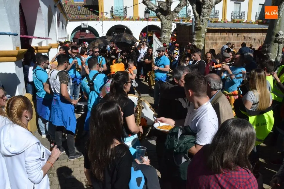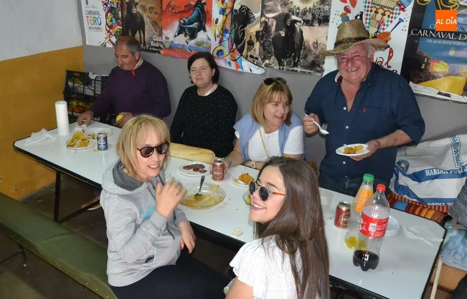 Por quinto año consecutivo, a la hora de comer del Lunes de Carnaval hubo una cita más especial de lo habitual en la Plazuela del Buen Alcalde de Ciudad Rodrigo, cuyas 11 casetas invitan todos los días de Carnaval a picotear algo a los que se acercan por allí tras los desencierros.