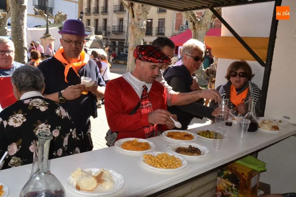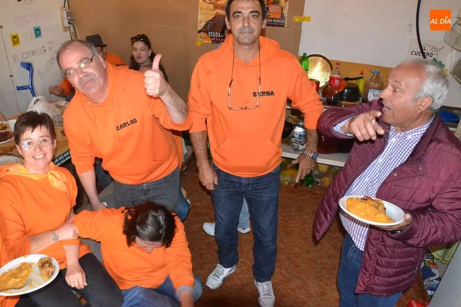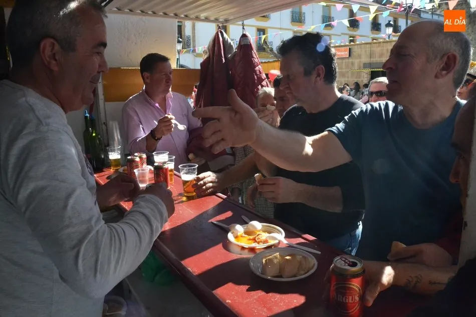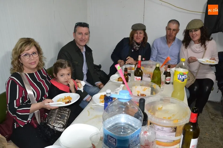 Esta empresa preparó unas 500 raciones, de las que dieron buena cuenta todos los miembros de las peñas, así como cuantas personas quisieron pasarse por allí durante ese rato, presidido un día más por el sol y la buena temperatura. Como es habitual, este tramo de la comida contó también con la animación de charangas mirobrigenses.