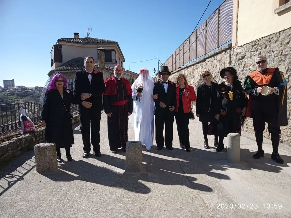 Boda carnavalesca en el templete ubicado en el paseo Alonso Andrea en Ledesma. Una original celebración en la que el buen humor fue la nota protagonista, y donde la pareja de contrayentes, Basilita y Tito, y demás invitados lucieron sus mejores galas. Y como toda celebración que se precie, no faltó el buen yantar. Por cierto, se admite respingo.
