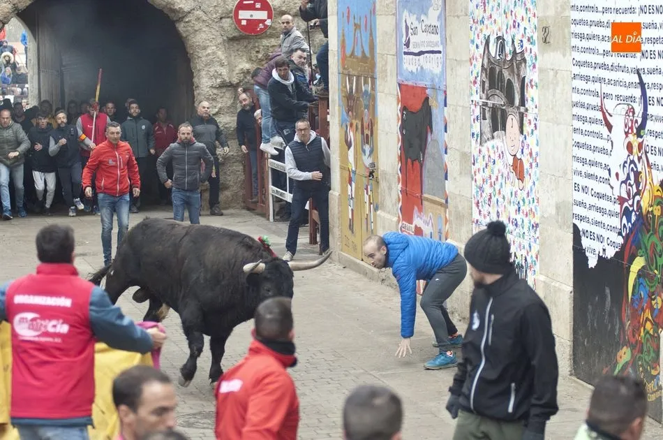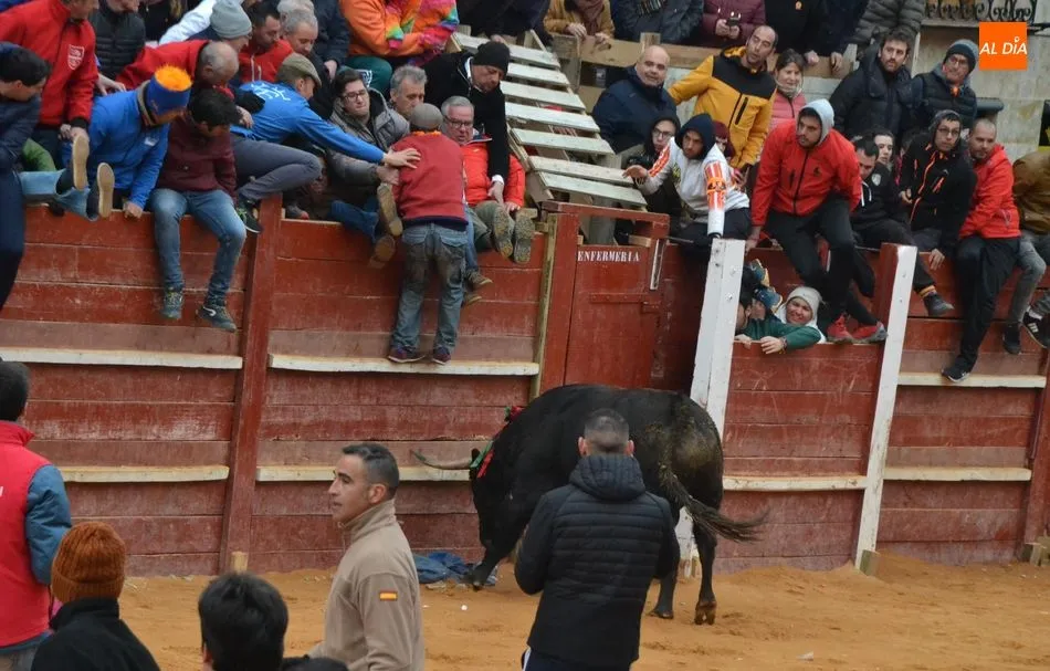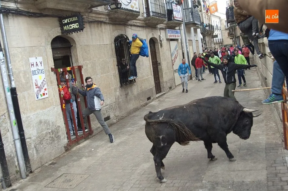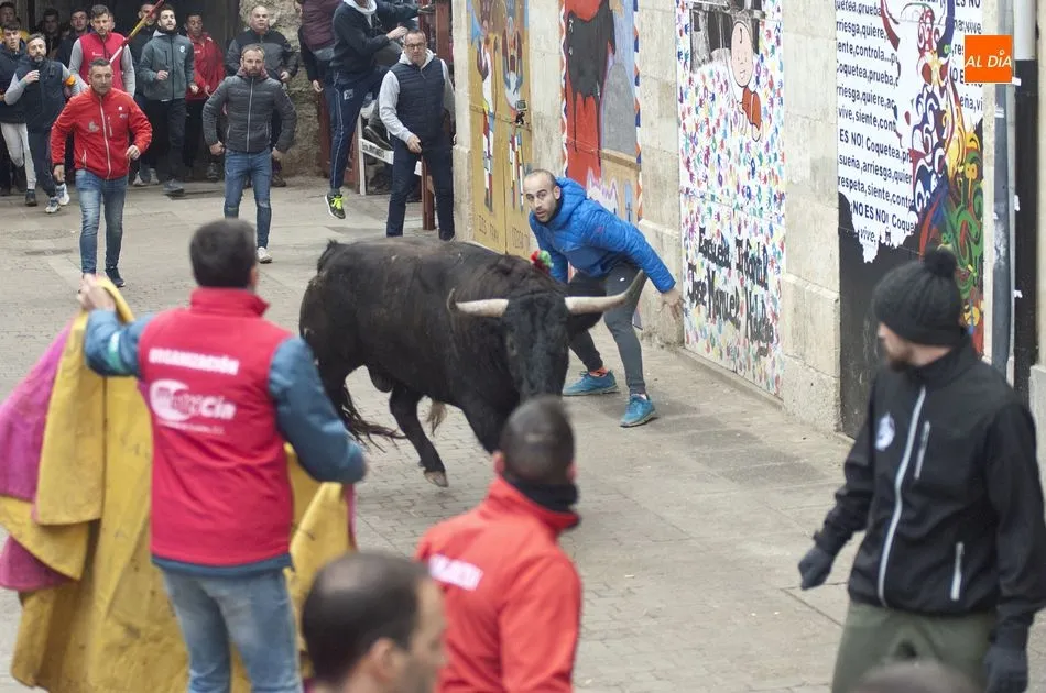 A continuación, el Toro se asomó a la calle Madrid, pero volvió al Registro, antes de poner rumbo otra vez a la Plaza, donde fue turno para unos cuantos maletillas. Tras ello, se dejó ?descansar? al astado unos minutos en mitad de la Plaza. En su vuelta a la actividad, decidió ?perdonar? a un hombre que no fue capaz de subirse a tiempo a una barrera.