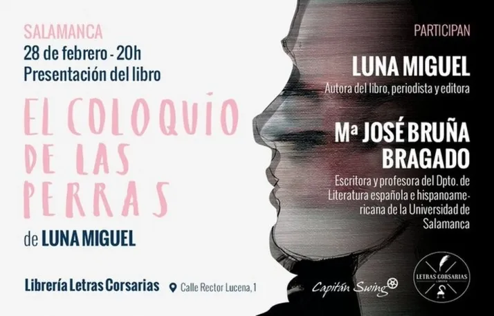 La escritora, poeta y periodista Luna Miguel, presenta este viernes en Salamanca el ensayo El coloquio de las perras, acompañada por María José Bruña Bragado, escritora y profesora titular de la Universidad de Salamanca en el departamento de Literatura española e hispanoamericana.