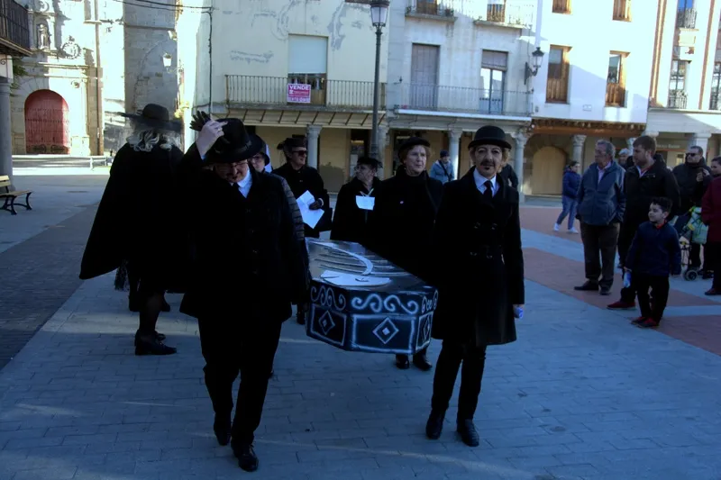 Una celebración que arrancaba pasadas las cinco y media de la tarde desde el Ayuntamiento, punto de partida para una comitiva compuesta por las viudas y plañideras, quienes no paraban de ofrecer lamentos mientras portaban el ataúd, protagonizando una comitiva que iba presidida por el obispo, el cura y los s