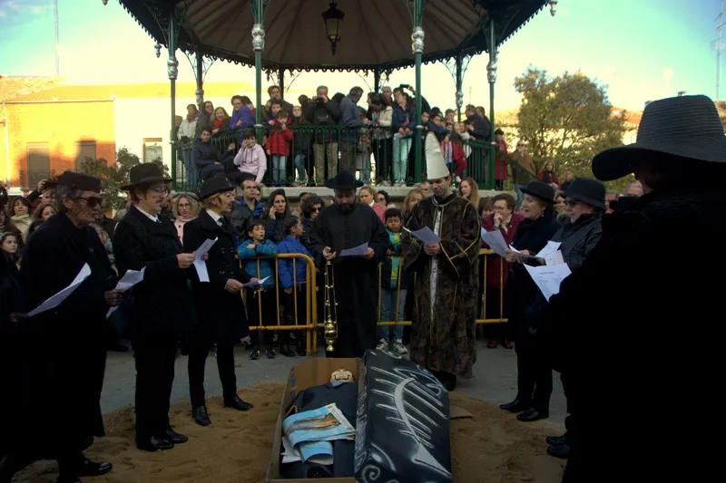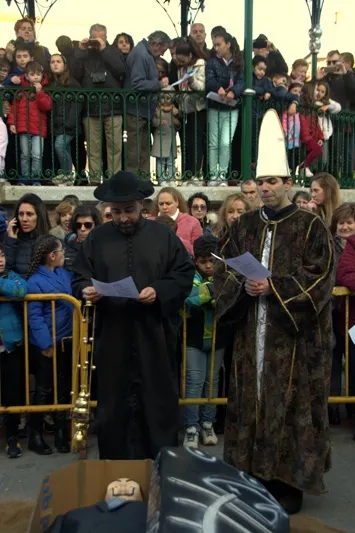 La original letanía en honor al difunto protagonizaba el desfile, mientras el público se iba congregando alrededor del Templete, en la zona habilitada para depositar el féretro y, tras una breve oración, comenzar con su quema, poniendo punto y final así a la festividad.