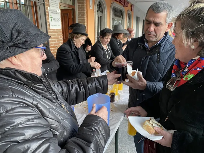 Tras ello la actividad se trasladaba hasta las mesas dispuestas en los soportales, en las que se repartían las sardinas y los refrescos, prolongando así el ambiente festivo en las ágoras hasta bien entrada la tarde.