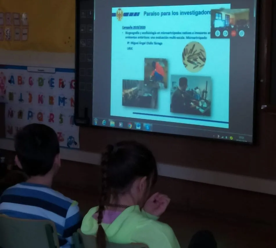 Alumnos del CRA Río Yeltes, de Villavieja, asistieron este jueves a una clase muy particular. Mediante videoconferencia, los expedicionarios españoles en la Antártida explicaron a los escolares sus objetivos científicos en el polo Sur, además de mostrarles imágenes de algunos de los singulares animales que habitan esta zona del planeta.