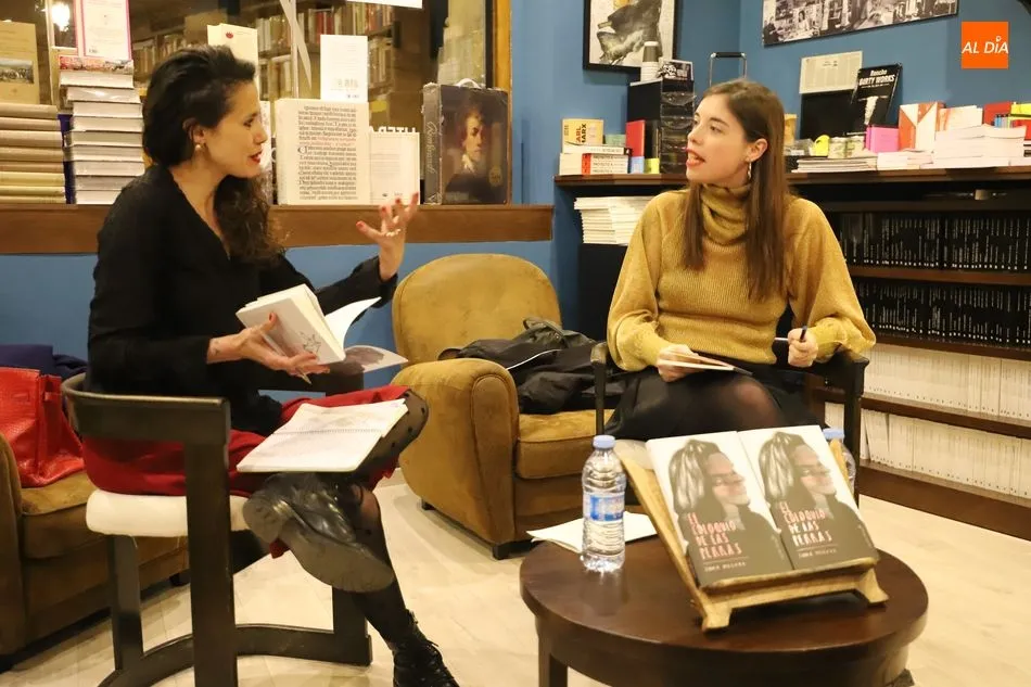 La escritora, poeta y periodista Luna Miguel, presentó este viernes en la librería Letras Corsarias el ensayo El coloquio de las perras, acompañada por María José Bruña, escritora y profesora titular de la Universidad de Salamanca en el departamento de Literatura española e hispanoamericana.