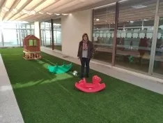 Se trata de dos espacios que hasta el momento no tenían ningún uso porque no se encontraban adaptados a los más pequeños, infrautilizados por tanto a pesar de su extensión. Ahora, gracias a la colocación de un césped artificial se han puesto en valor y permitirán que los niños puedan disfrutar de un nuevo espacio de juegos, cubierto en invierno, gracias a los toldos con que cuenta, y abierto en verano cuando sean retirados.