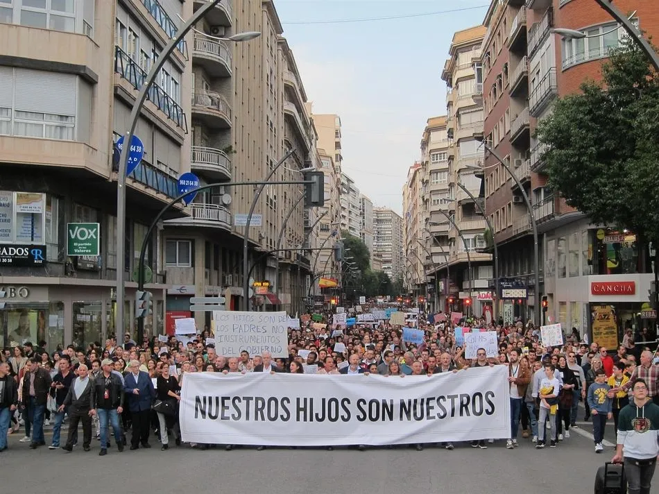 Varios miles de personas han salido este sábado a la calle en Murcia para manifestarse a favor del 'pin parental', en contra del adoctrinamiento en las aulas, y para pedir que las leyes no coarten la libertad de los padres a la hora de elegir la educación de sus hijos.