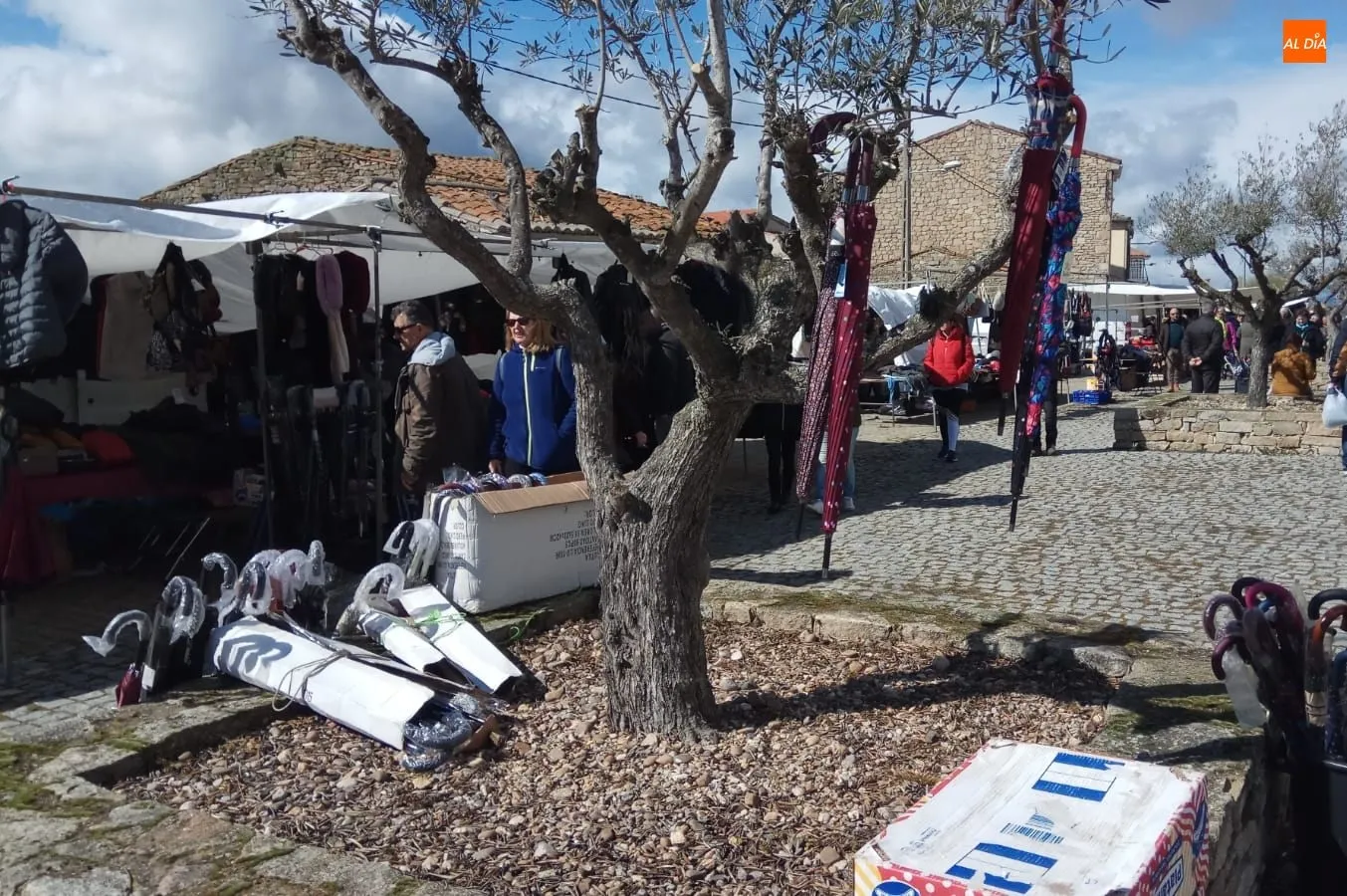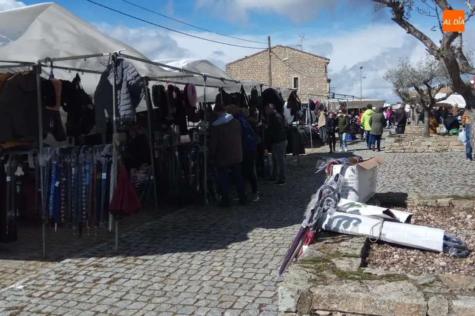 La llegada de la borrasca ?Jorge? no fue obstáculo para que el mercadillo portugués de Trabanca registrara una excelente afluencia de público, aunque sí restó asistencia en cuanto a puestos ante una amenaza de lluvia que se quedó solo en eso, en amenaza, pues apenas cayeron unas gotas en Trabanca a primera hora de la mañana. Lo que sí molestó fue el viento, lo que obligó a asegurar mejor los toldos de los expositores.