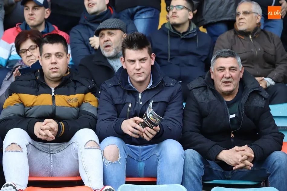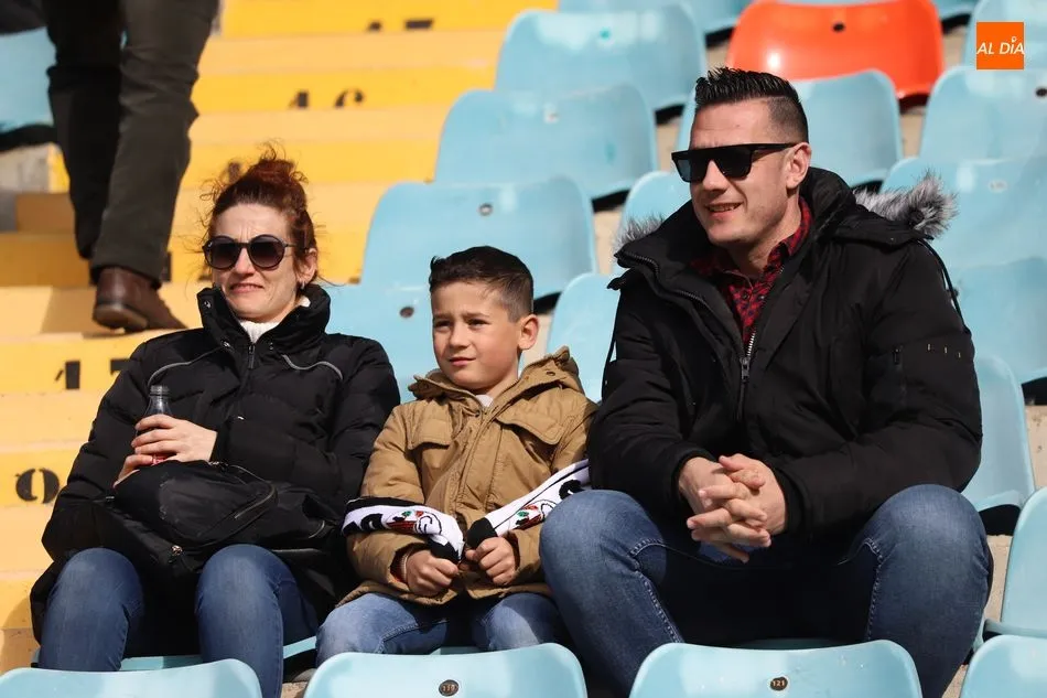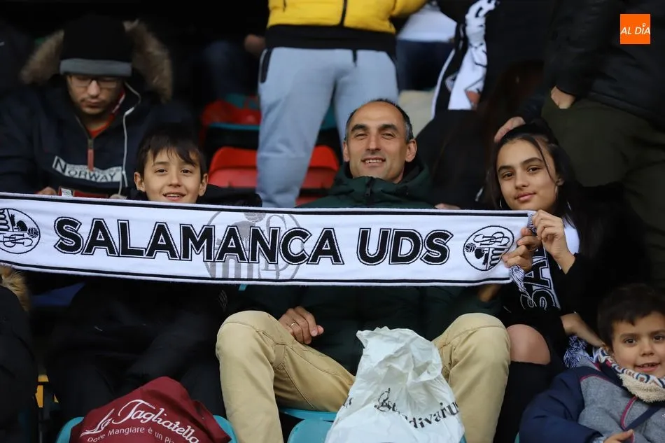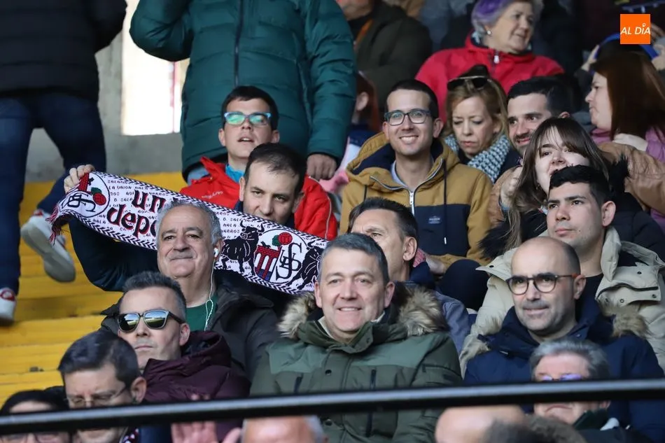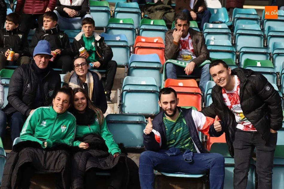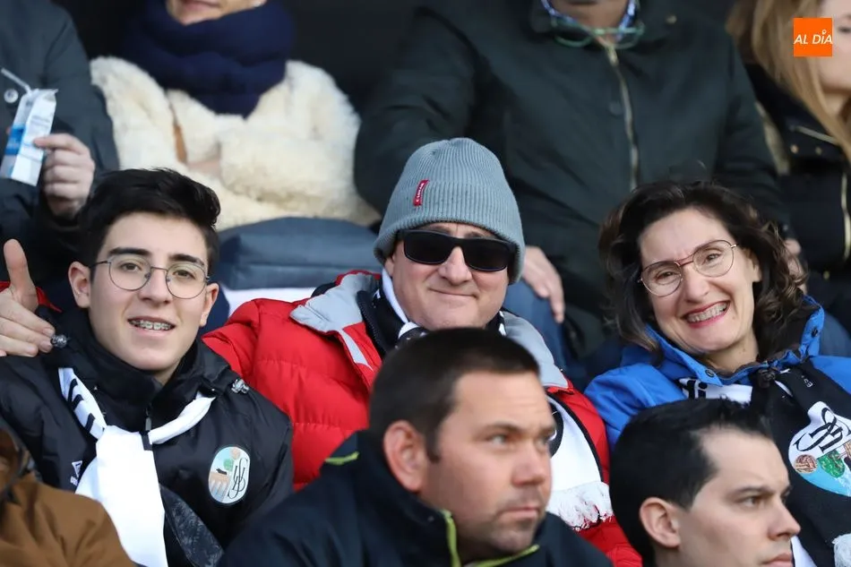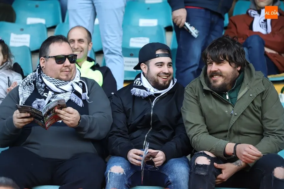 El buen ambiente reinó en el derbi del Helmántico entre las aficiones. Los seguidores del Salamanca UDS y el Guijuelo disfrutaron de una gran jornada de fútbol en el coliseo charro.