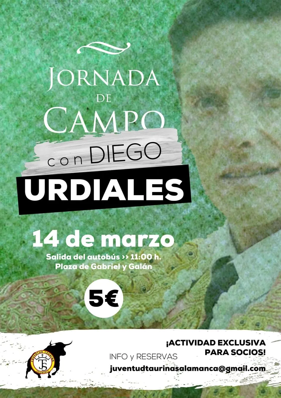 El matador Diego Urdiales, ha organizado una jornada campera con la asociación Juventud Taurina de Salamanca, el próximo día 14 de marzo.