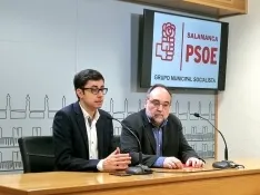 El portavoz del Grupo Municipal Socialista en el Ayuntamiento de Salamanca, José Luis Mateos, junto al concejal Juan José García Meilán, presentado algunas de las iniciativas que el PSOE llevará al próximo Pleno del Consistorio. En la primera de ellas los socialistas apuestan por la adaptación de las paradas, junto también a las marquesinas que existen en ellas, del autobús urbano para hacerlas más accesibles facilitando el uso del transporte público a la totalidad de los ciudadanos.