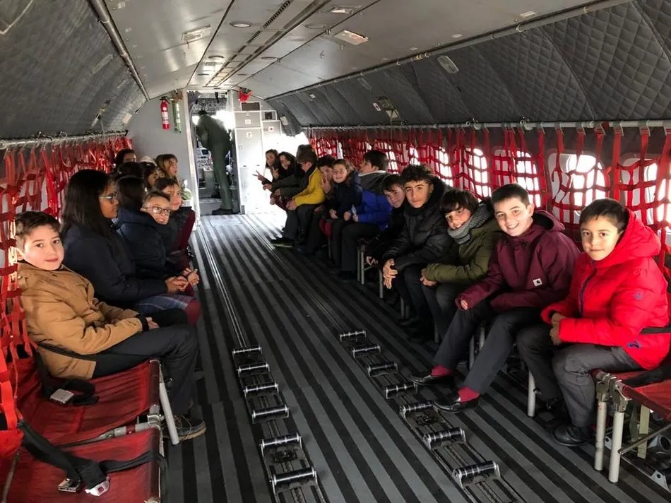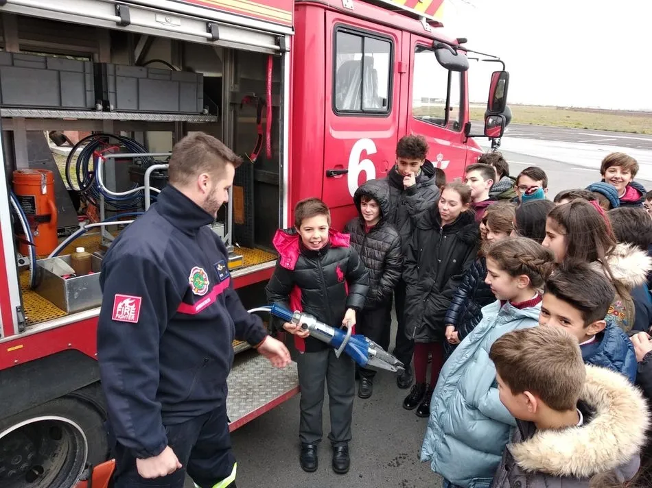 Los alumnos han montado en los aviones E-25 y T-19 y han disfrutado de una exhibición de la sección contra incendios