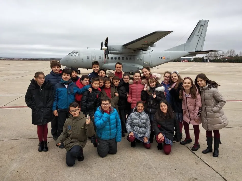 Los alumnos de 6º de Educación Primaria del Colegio San Juan Bosco han visitado el aeródromo de la Base Área de Matacán, una de las instalaciones con mayor prestigio nacional que tiene el Ministerio de Defensa para la formación de pilotos militares y por las técnicas que utilizan en otras especialidades relacionadas con el día a día del Ejercito del Aire. Los alumnos han montado en los aviones E-25 y T-19 y han disfrutado de una exhibición de la sección contra incendios.