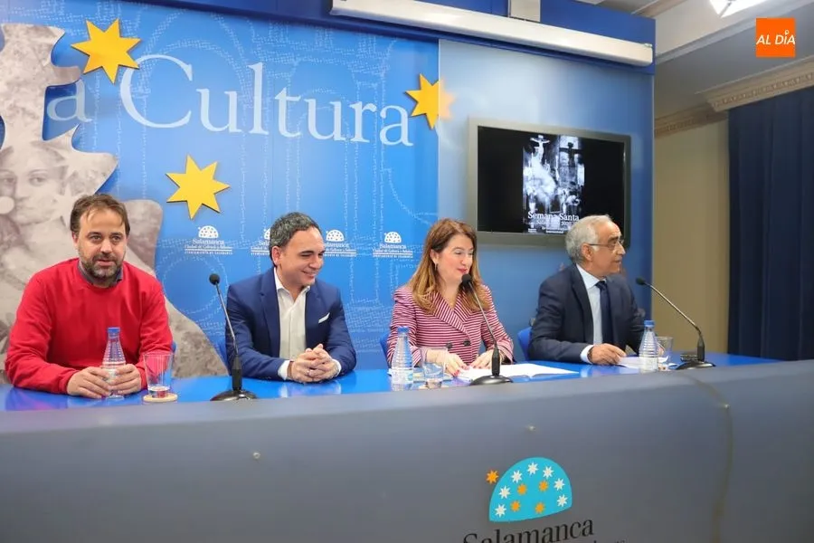 La concejala de Cultura del Ayuntamiento de Salamanca, Mª Victoria Bermejo, y el presidente de la Junta de Semana Santa, José Adrián Cornejo, han presentado esta mañana las actividades culturales programadas durante el mes de marzo con motivo de la celebración de la Semana Santa en Salamanca.