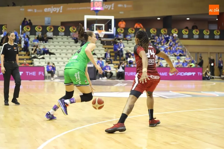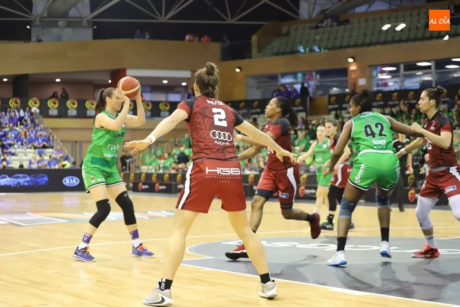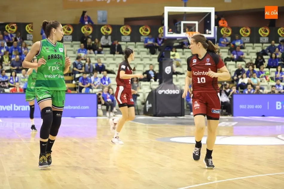 El encuentro arrancó con numerosos fallos por parte de ambos equipos, por lo que hasta el ecuador del primer acto tardaron en empezar a sucederse las canastas, aunque fue el Araski el que logró coger ventaja en el marcador tras todo ello para marcharse con una ligera renta al segundo cuarto (10-17). Mientras, la tónica del duelo cambió bastante poco con un cuadro verde en estado de gracia. Un fiel reflejo de la buena actuación coral del plantel fue que tres de sus jugadoras estuvieron a un palmo de lograr los dobles dígitos antes del descanso (30-41).