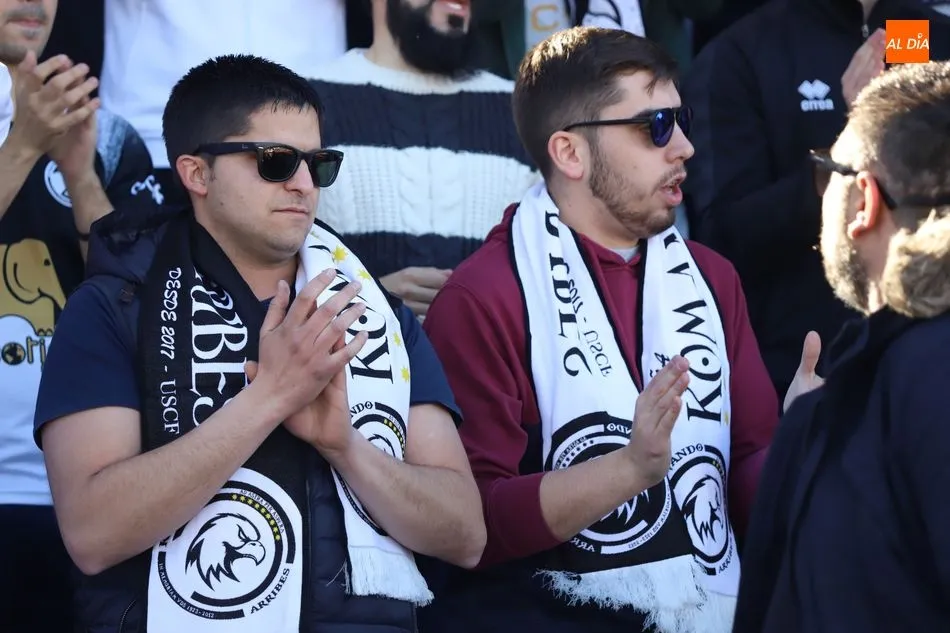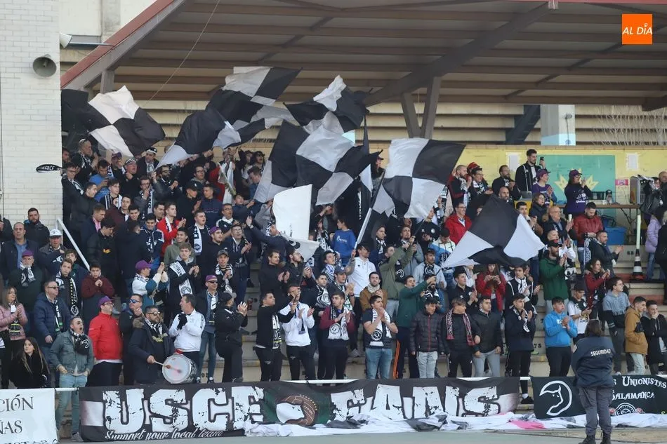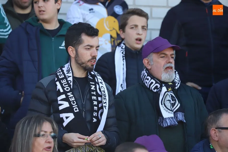 La afición de Unionistas de Salamanca está con el equipo y así lo demostró acudiendo esta tarde a las Pistas del Helmántico para animar al conjunto blanquinegro contra Osasuna B.