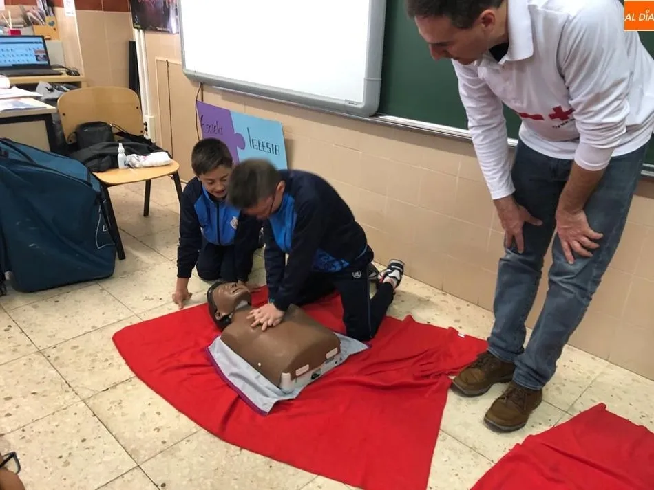 Cruz Roja les imparte una sesión de primeros auxilios para explicarles la técnica