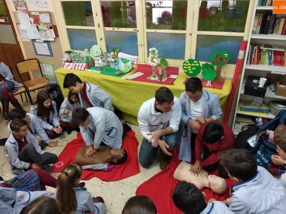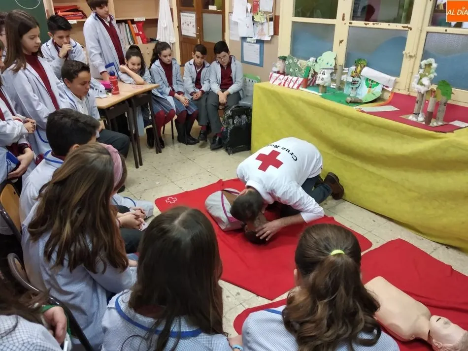 Los estudiantes de 6º de Primaria del Colegio San Juan Bosco han realizado la segunda sesión de la formación que está impartiendo Cruz Roja en el centro sobre primeros auxilios.