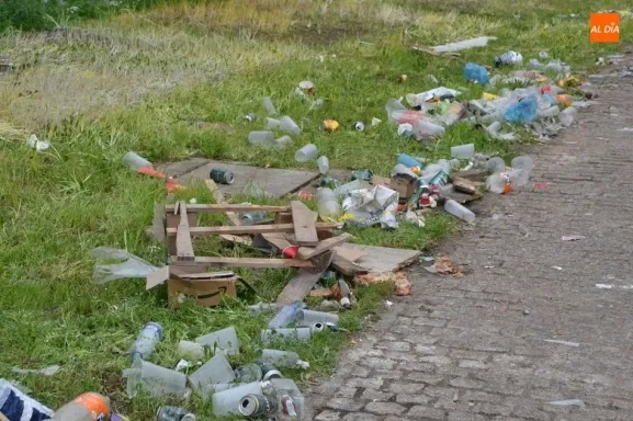 Como se puede ver en las imágenes, en el Paseo Fernando Arrabal ya solo quedan, además de esos restos de basura, tres de las cuatro casetas de cuyo montaje se sigue encargando todavía el Ayuntamiento de Ciudad Rodrigo.
