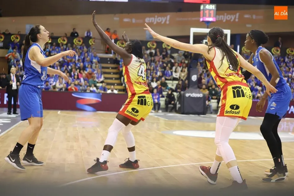 Miguel Ángel Ortega optó por un quinteto compuesto por Silvia Domínguez, Maite Cazorla, Tiffany Hayes, Temi Fagbenle y Emese Hof con la idea de empezar con buen pie en encuentro decisivo. Además, Hayes tardó muy poco tiempo en llevar el peso de la anotación del cuadro azulón con un buen arranque y las charras empezaron a aplicar una sólida defensa con la idea de no conceder muchas oportunidades a su rival.