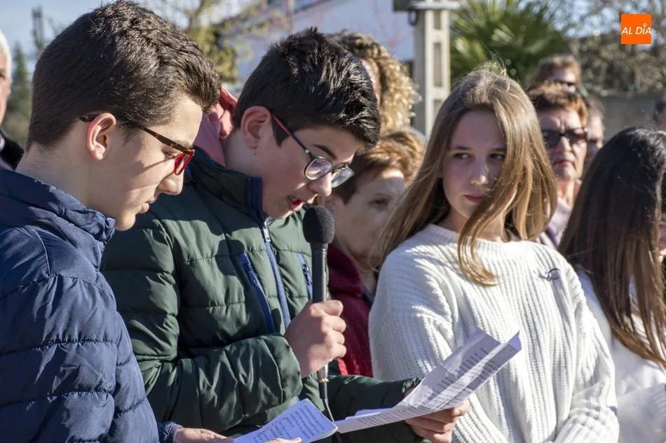 Tras descubrir del Monumento a la Mujer, en el que reza la frase ?A las mujeres que lucharon y luchan por la igualdad?, el alcalde de la localidad, Jorge Rodriguéz, pronunciaría unas palabras reivindicando la igualdad de género, intervención que daría paso a la lectura de un manifiesto a cargo de la concejala Asunción Sanchez. A continuación, niños y jóvenes, de la mano de Ana Mateos, entonaban una canción en lengua de signos además de dar lectura de frases en las que coincidían en la necesidad de una sociedad igualitaria entre hombres y mujeres.