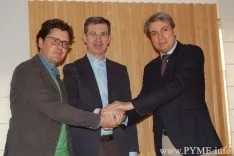 La firma se ha realizado en un encuentro que ha contado con la presencia de Manuel Prieto Sierra y José Domingo Ríos, presidente y vicepresidente primero de AESCON, y de Policarpo Sánchez, presidente de la ?Asociación Salvar el Archivo de Salamanca?, promotora del manifiesto.
