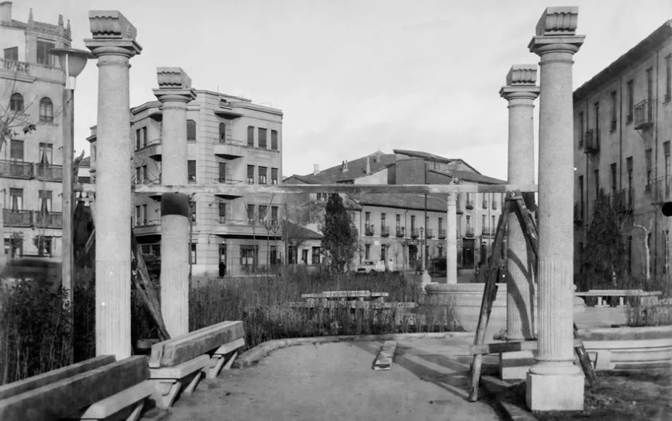 Antonio Blázquez publica en las redes sociales una foto del archivo de Gombau, que muestra la reforma del paseo de Carmelitas, emprendida en los años 60, ?cuando se colocó la columnata que aún permanece?, explica.