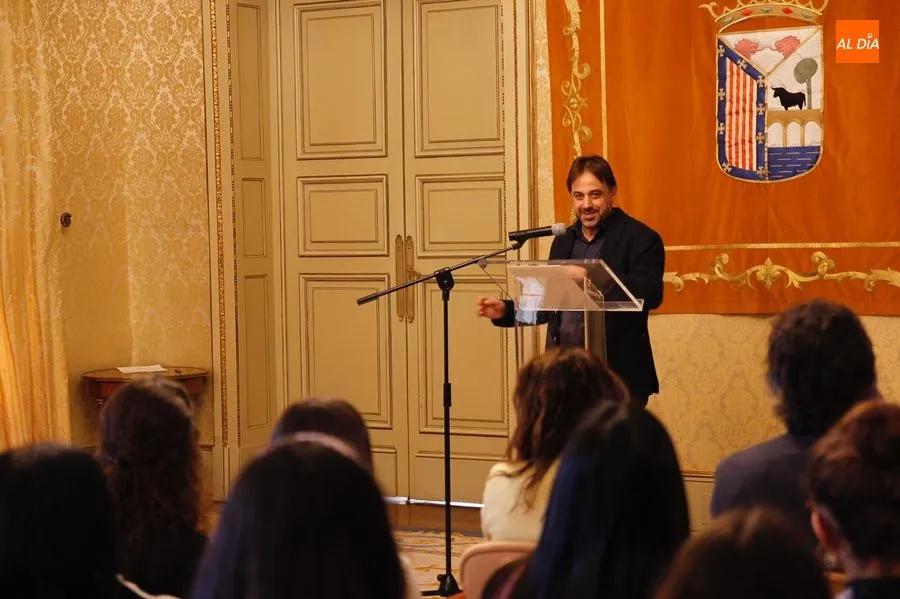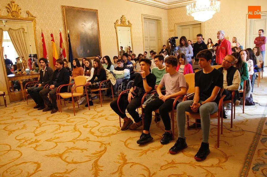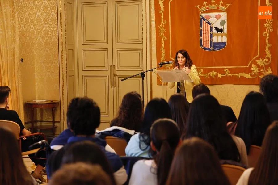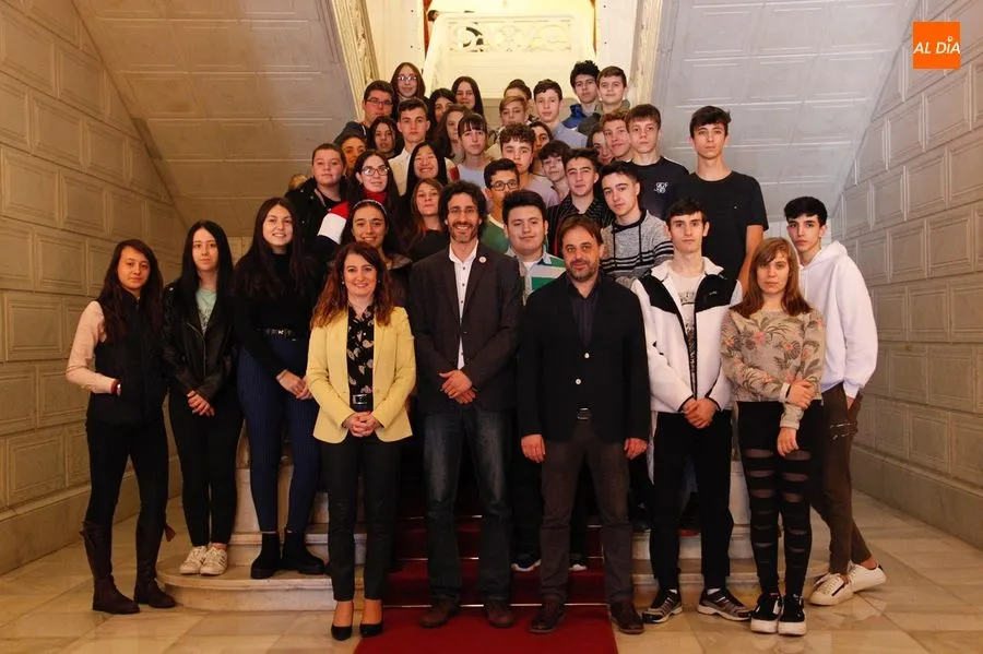 Los concejales de Educación y Turismo del Ayuntamiento de Salamanca, María Victoria Bermejo y Fernando Castaño, han recibido esta mañana a un grupo de 37 alumnos de 3º y 4º de Educación Secundaria del colegio La Milagrosa que han desarrollado un mapa literario de la ciudad de Salamanca en soporte digital.