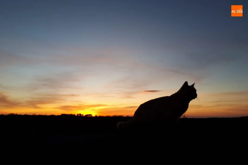 Foto: María de los Ángeles Pérez Méndez. Lunes, 9 de marzo, temperaturas primaverales. El atardecer se dibujaba con pinceladas de colores entre la figura de un lindo gatito. Localidad Lumbrales (Salamanca).