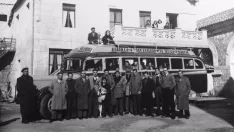 Esta foto de Pazos, publicada en las redes sociales por Angel Granadero Ropero? nos muestra a los viajeros junto al autobús de la empresa El Pilar, en las denominadas ?cocheras de Alipio?, en Ciudad Rodrigo, en los años 40 o 50.