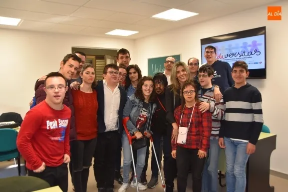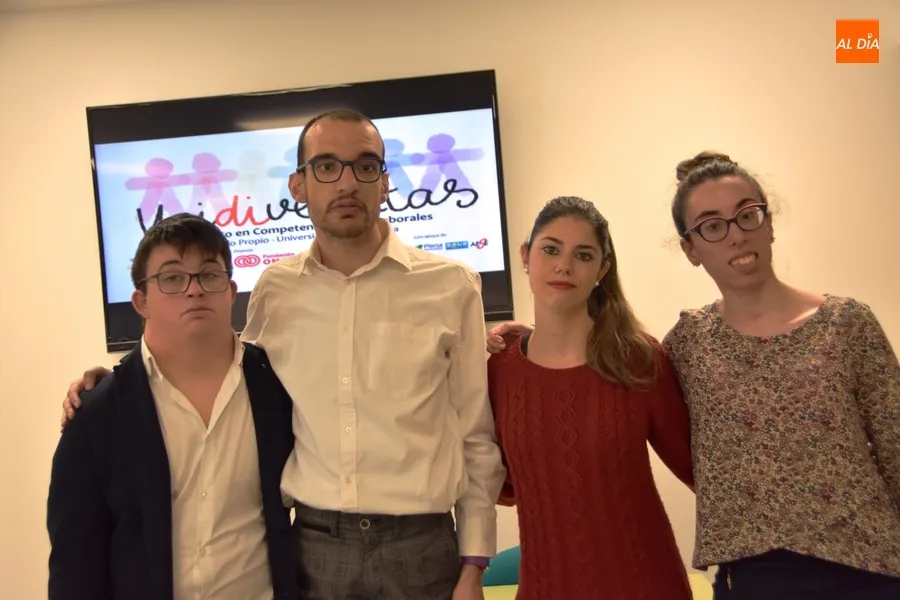 Carlos, Natalia (natural de Aldeadávila), Lorena y Marcos son cuatro de los integrantes de esta iniciativa que cuenta con dos años de vida y que se desarrolla en la Facultad de Psicología de la USAL y bajo la dirección del Instituto Universitario de Integración en la Comunidad (INICO). Este proyecto, financiado por la Fundación Once y el Fondo Social Europeo, ofrece un título propio a estas personas con discapacidad.