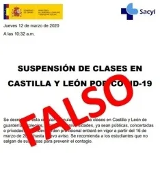 Un falso anuncio a través de las redes sociales advierte este jueves de la decisión de suspender la actividad docente en Castilla y León, algo que fuentes de la Consejería de Sanidad consultadas por Europa Press han desmentido de forma rotunda y categórica.