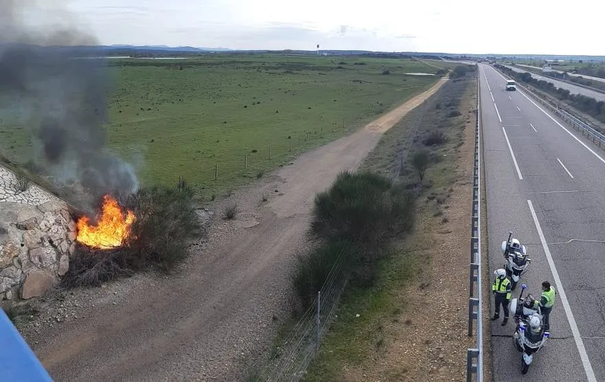 El suceso, del que se dio la voz de alarma un poco después de las 17.00 horas, ocurrió concretamente junto al kilómetro 309 de la A-62 en dirección a Salamanca, en una acumulación arbustiva situada en la base de uno de los extremos del viaducto que cruza la Autovía en ese punto.