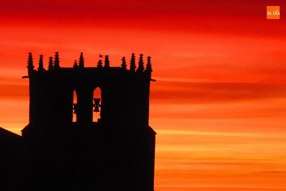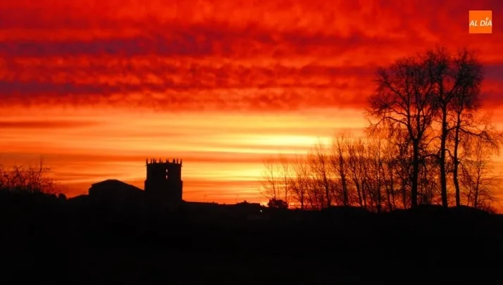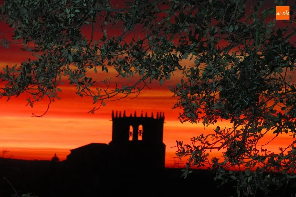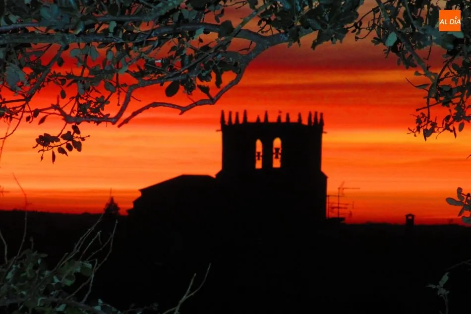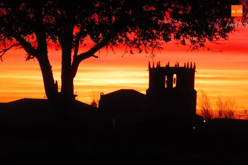 Fotos: Albert Calderón. Puesta de sol sobre la torre de la iglesia de Guadramiro.