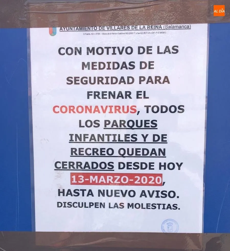 Aunque, de momento, en la capital charra no se han cerrado parques para frenar la propagación del virus, en algunas localidad del alfoz salmantino como Cabrerizos o Villares de la Reina si se ha tomado esta decisión.