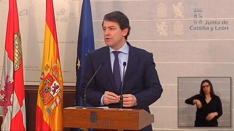 "Los funcionarios de la Junta de Castilla y León tienen que acudir este lunes a su lugar de trabajo y tendrán conocimiento de quién tiene que volver a su casa o quedarse por necesidad". Así lo ha indicado el presidente regional, Alfonso Fernández Mañueco, en su comparecencia tras el encuentro virtual con Pedro Sánchez.