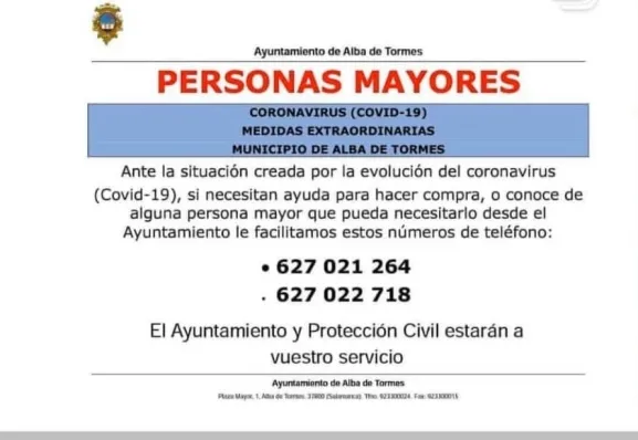 El Ayuntamiento de Alba de Tormes y la Agrupación de Protección Civil Mancomunidad ?Rutas de Alba? apoyarán a las personas mayores que necesiten ayuda para realizar la compra durante la crisis del coronavirus.