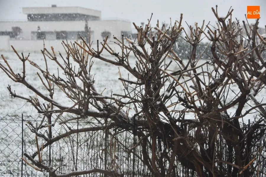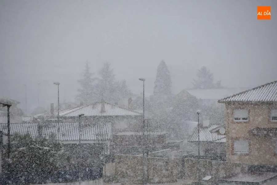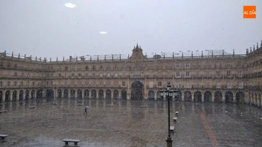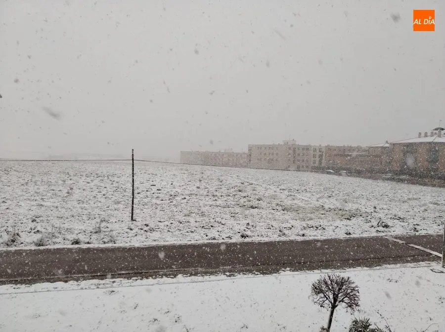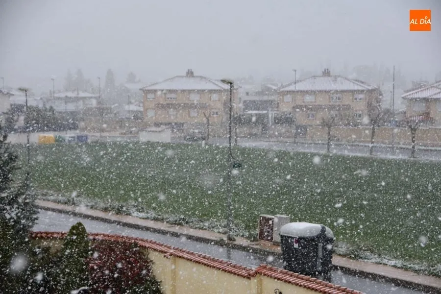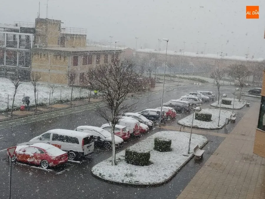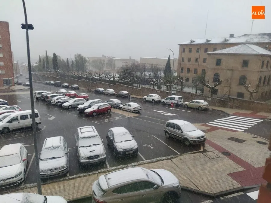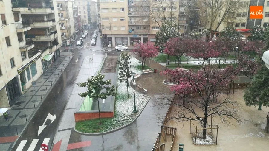 Tras un fin de semana marcado por la restricción de movimientos de los ciudadanos, debido a la crisis del coronavirus, este lunes los salmantinos empezaban el día con una sorprendente nevada.