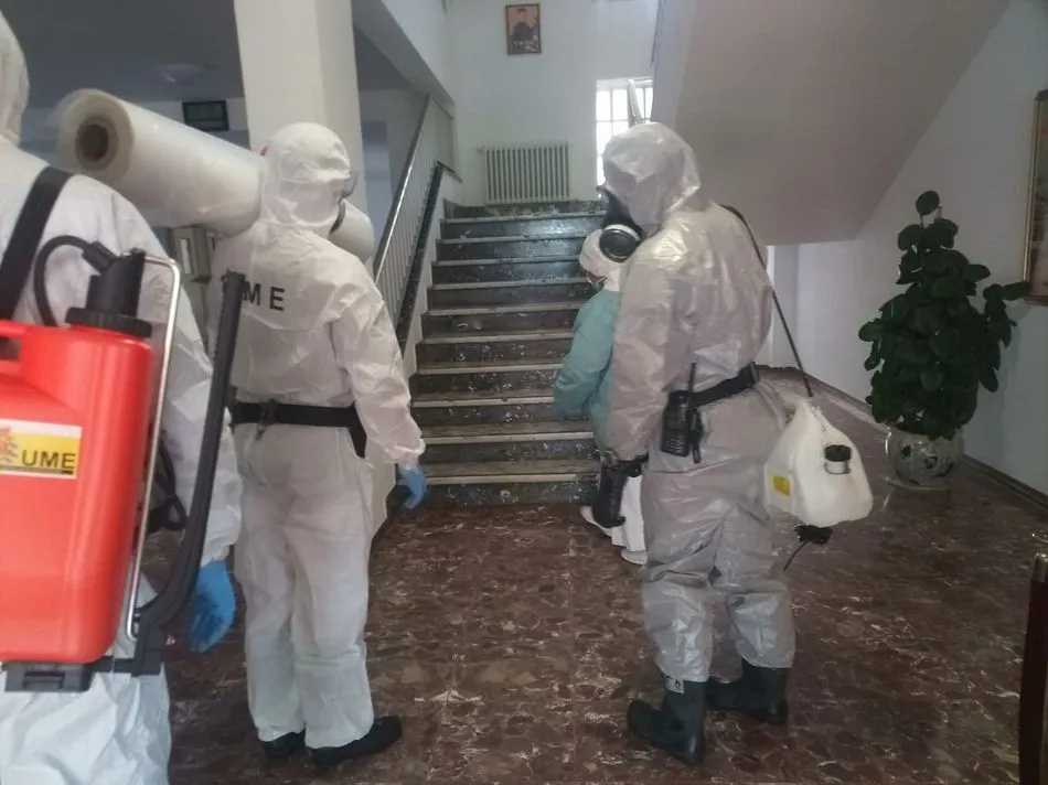 Efectivos de la UME han recorrido varias localidades salmantinas en la jornada de hoy trabajando en la desinfección de espacios comunes