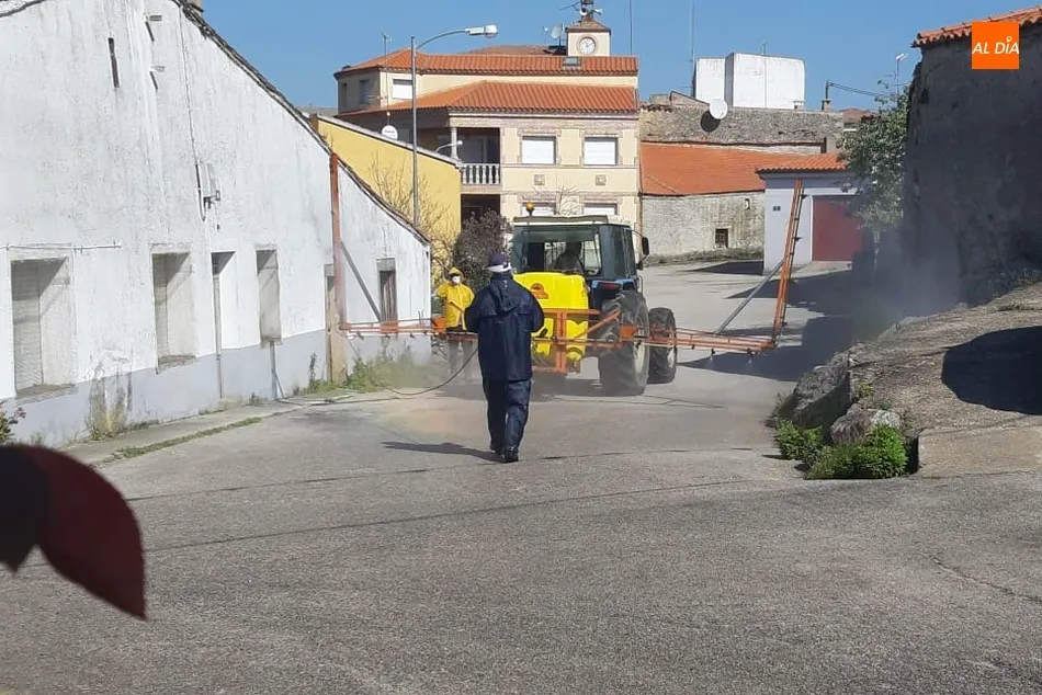 Como en otras localidades, se ha utilizado un tractor con un equipo de fumigación, así como una pequeña sulfatadora manual para llegar a todos los rincones y rociar una solución de lejía y agua.