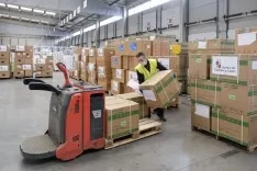 A través de un avión llegado a Madrid, este material ha sido trasladado en camiones a la nave de almacenamiento central para su posterior distribucción