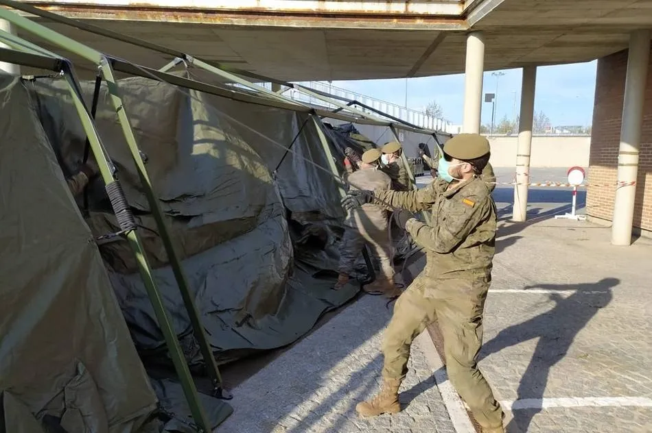 Los militares del Regimiento de Especialidades de Ingenieros número 11 (REI 11) han regresado a Salamanca después de varios días trabajando en la instalación del hospital provisional en la ciudad de Segovia.