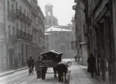 Una de las moderadoras de la plataforma FOTOS ANTIGUAS DE SALAMANCA, María del Mar, publica una foto antigua de la Rúa Mayor, captada alrededor de 1935 por Ángel de Horna, que muestra ?la vida cotidiana de Salamanca?. En concreto, la ?recogida de basura en un frío día de nieve?, que nos permite apreciar cómo era esta calle, en la que es reconocible la iglesia de San Martín al fondo.